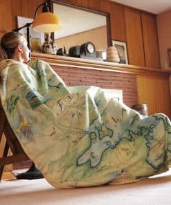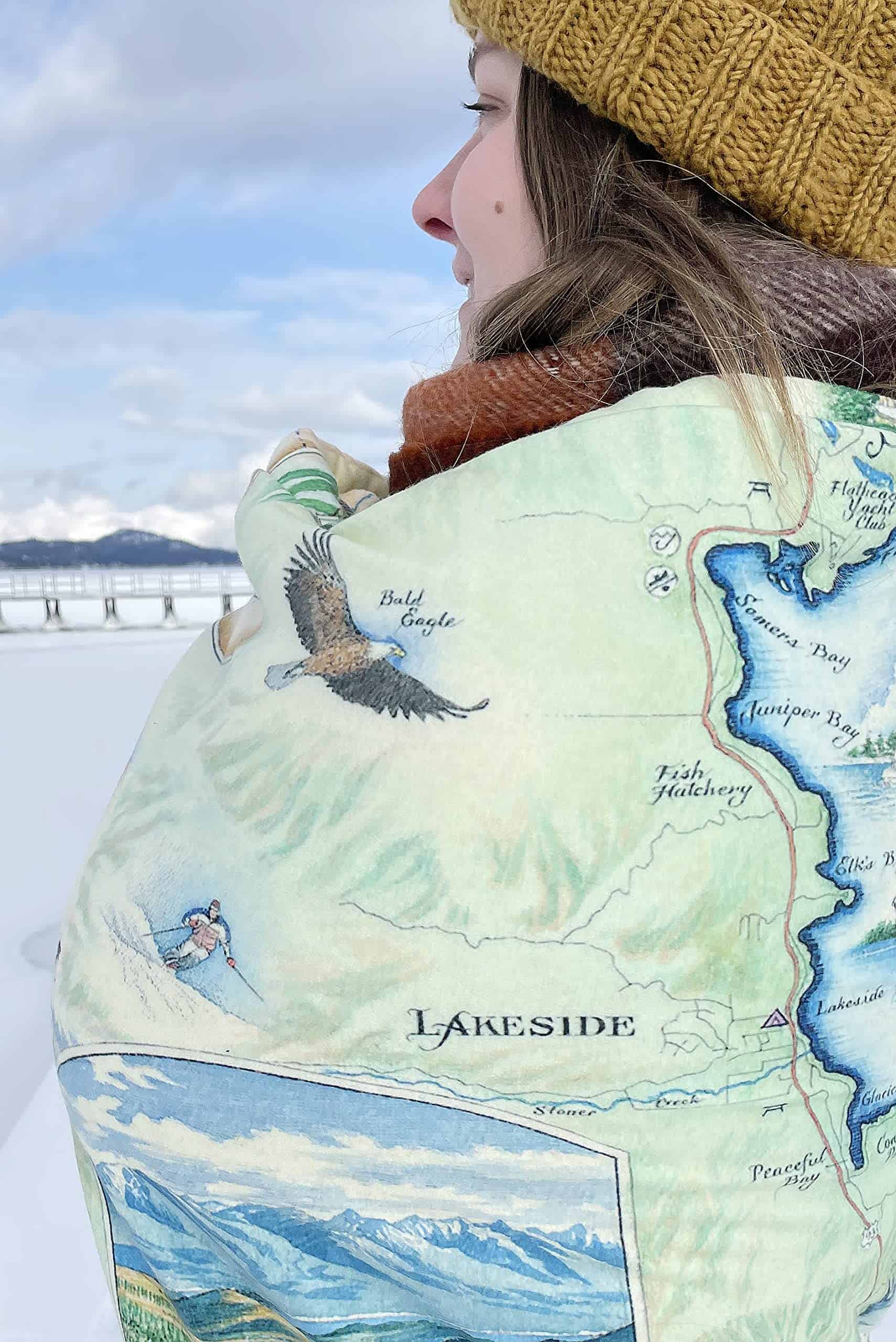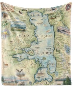 Manta de Lana con Mapa del Lago Flathead de Montana – Arte