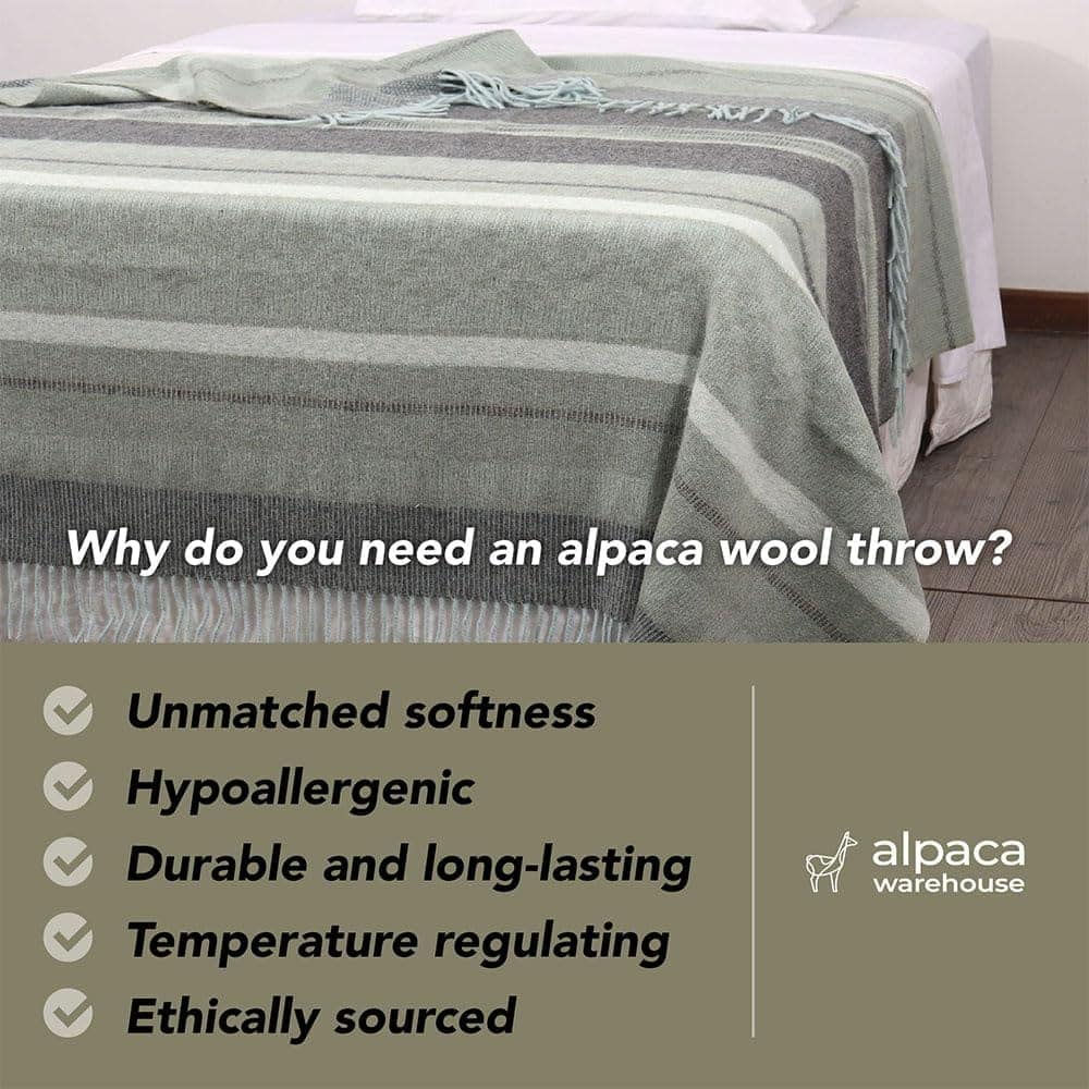 ¿POR QUÉ ELEGIR NUESTRA MANTA DE LANA DE ALPACA? Ofrecemos una amplia gama de impresionantes combinaciones de colores, asegurando que haya un diseño que se adapte a tu gusto, estilo de vida y decoración. Hecha en Perú por hábiles artesanos, las fibras seleccionadas de nuestra manta de lana resultan en un tejido fuerte y duradero que te encantará durante muchos años.