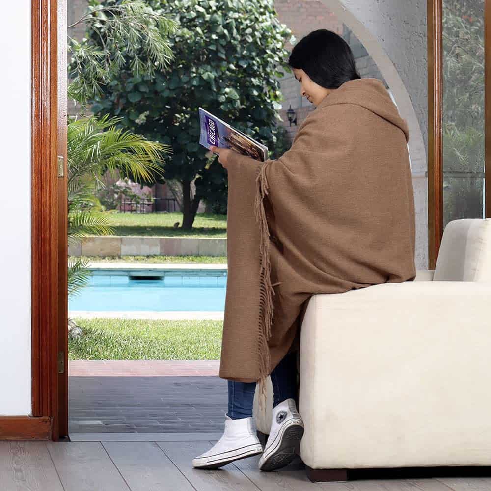 Manta de Lana de Alpaca Junin Pride Tejida -Canela