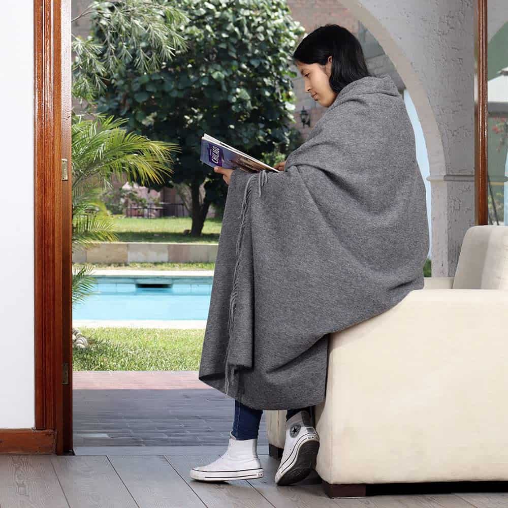 Manta de Lana de Alpaca Junin Pride Tejida -Gris