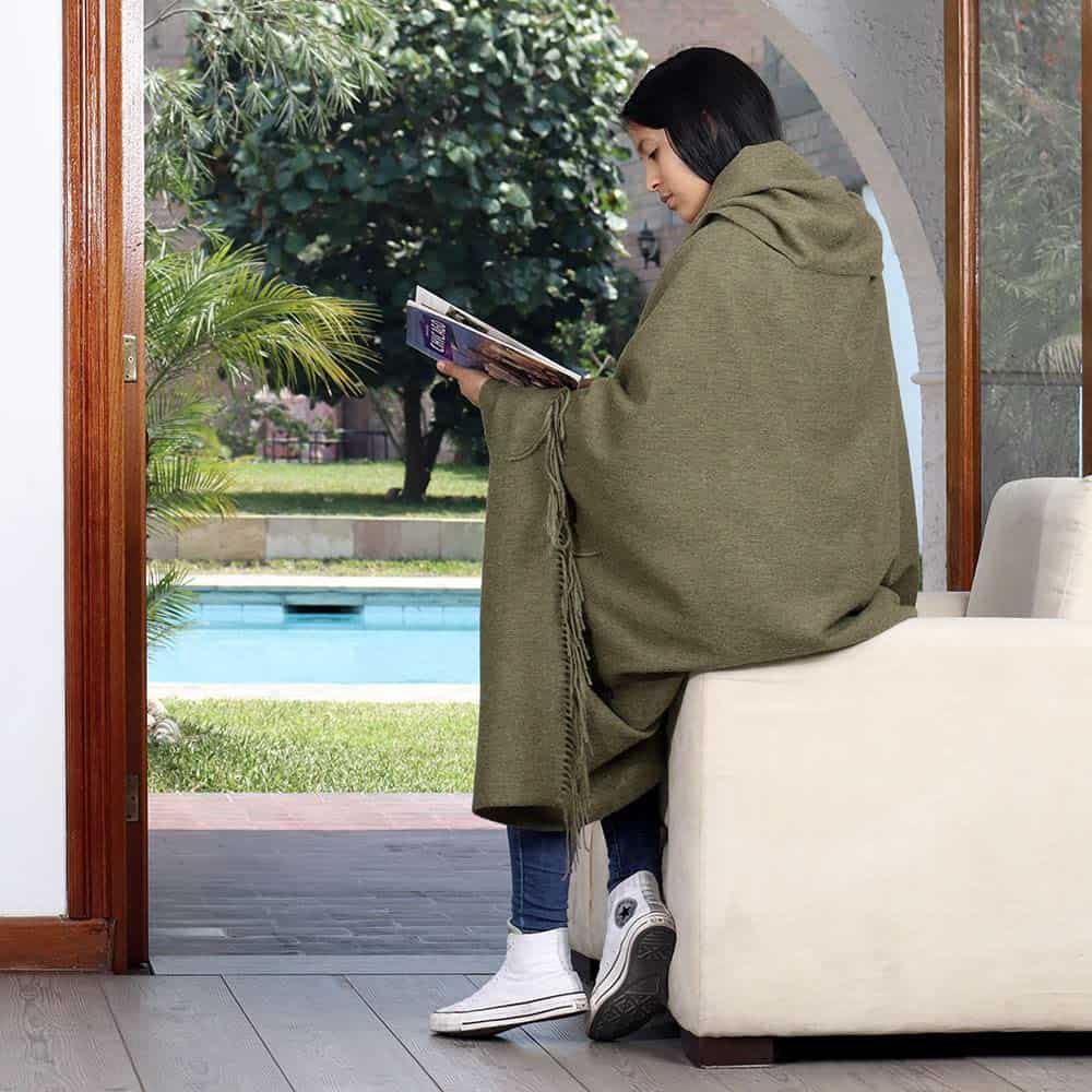Manta de Lana de Alpaca Junin Pride Tejida Suave y Cálida Diseño de Color Sólido Perú 72″ x 61″