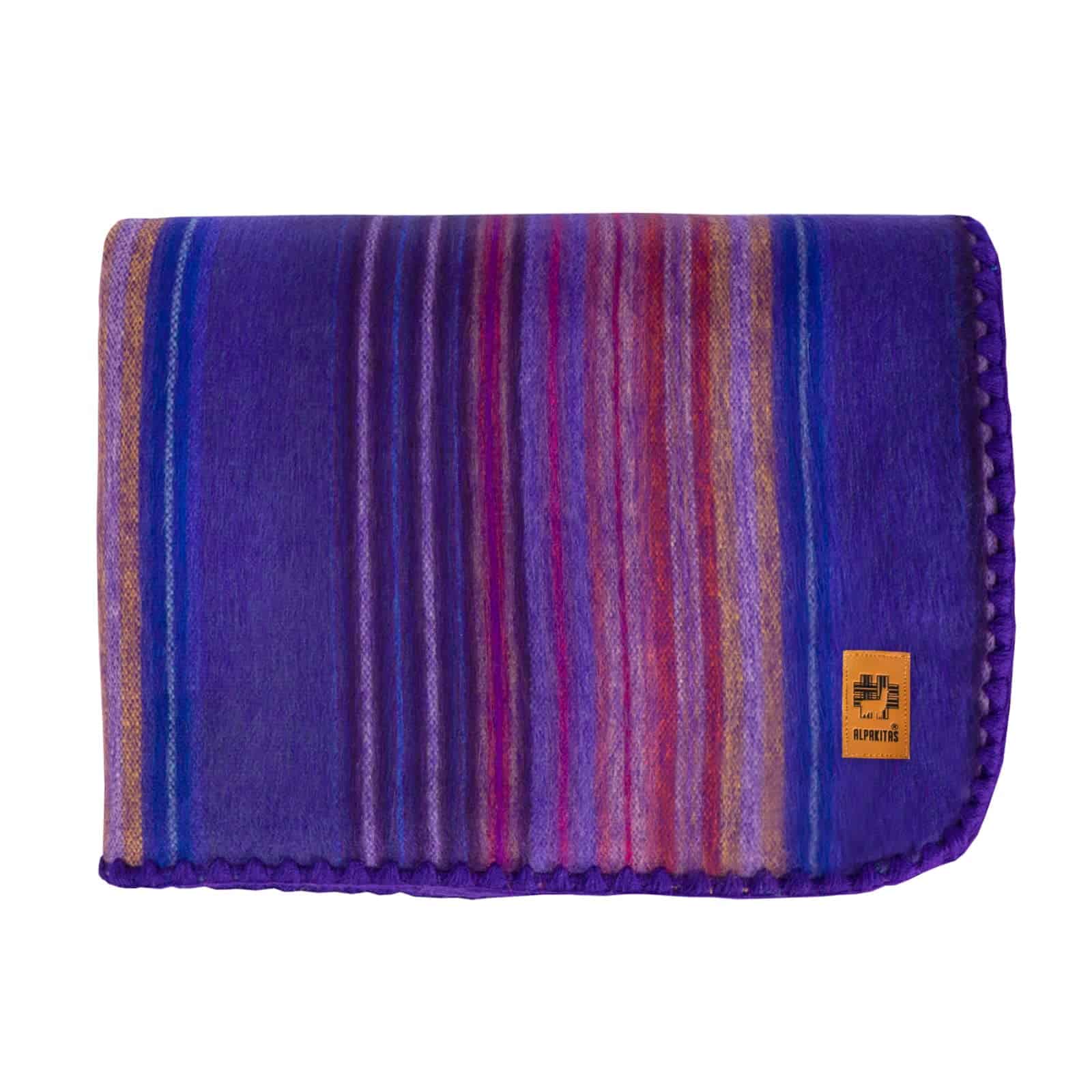 Manta de Lana de Alpaca – Manta de Cama -Azul y Morado Queen