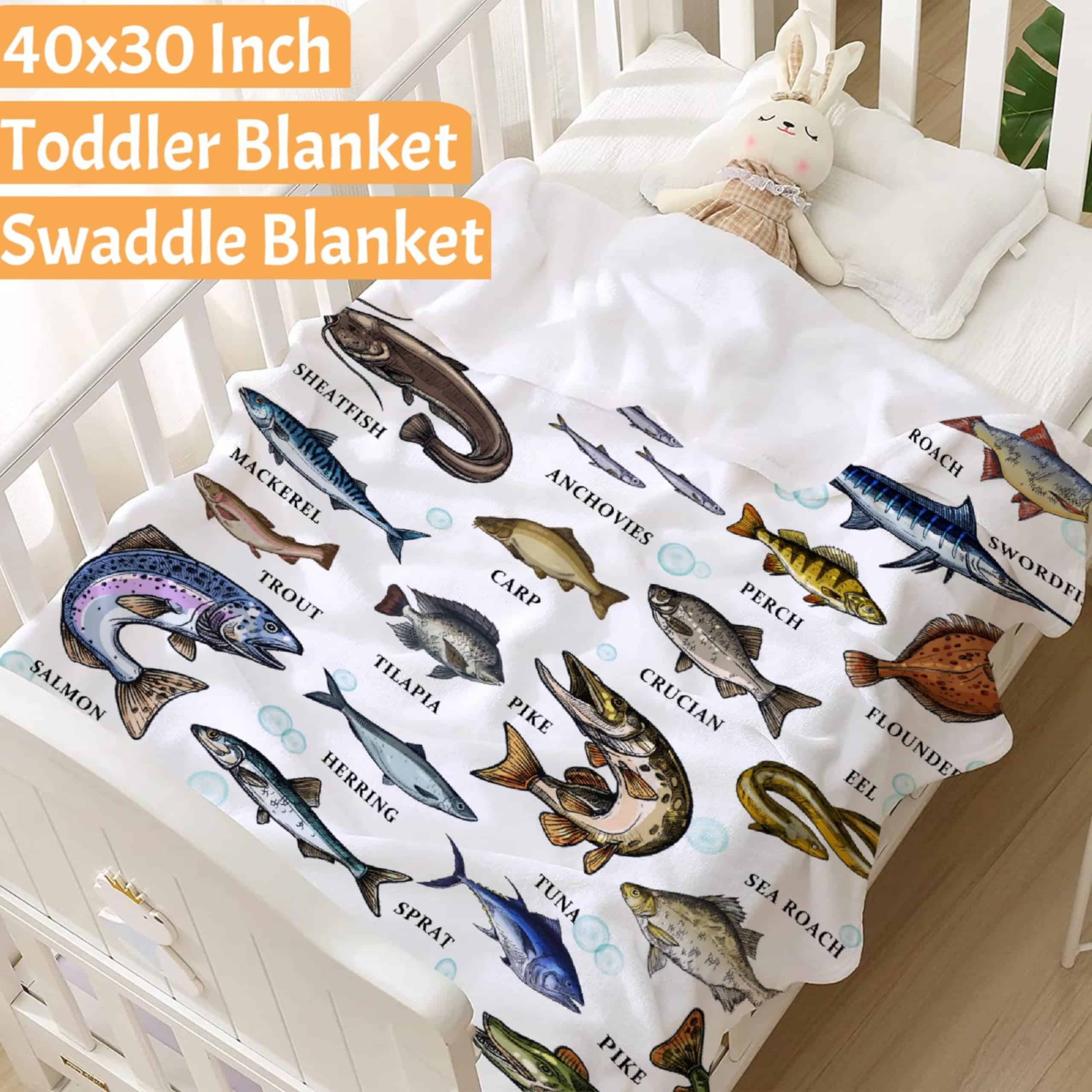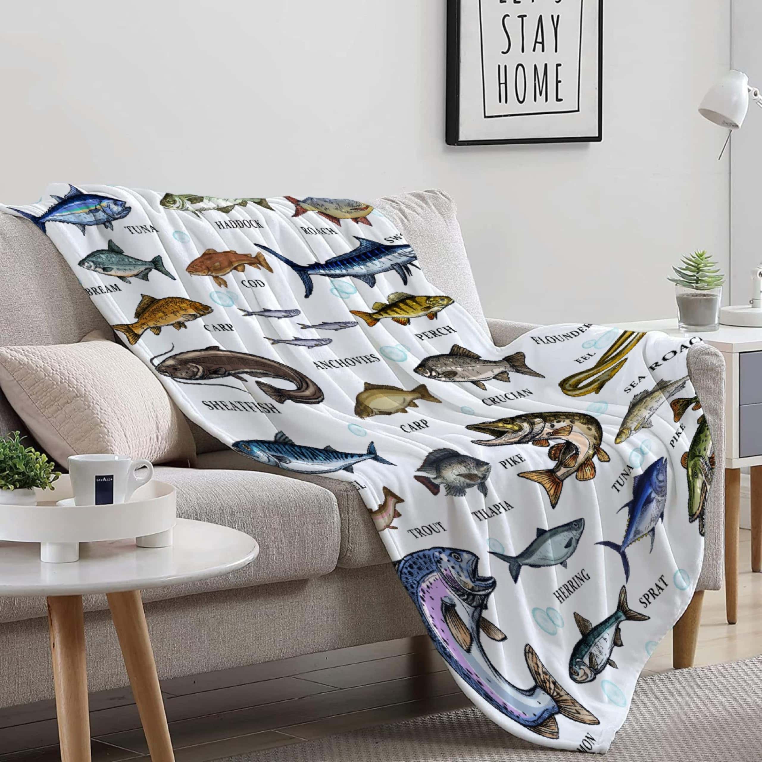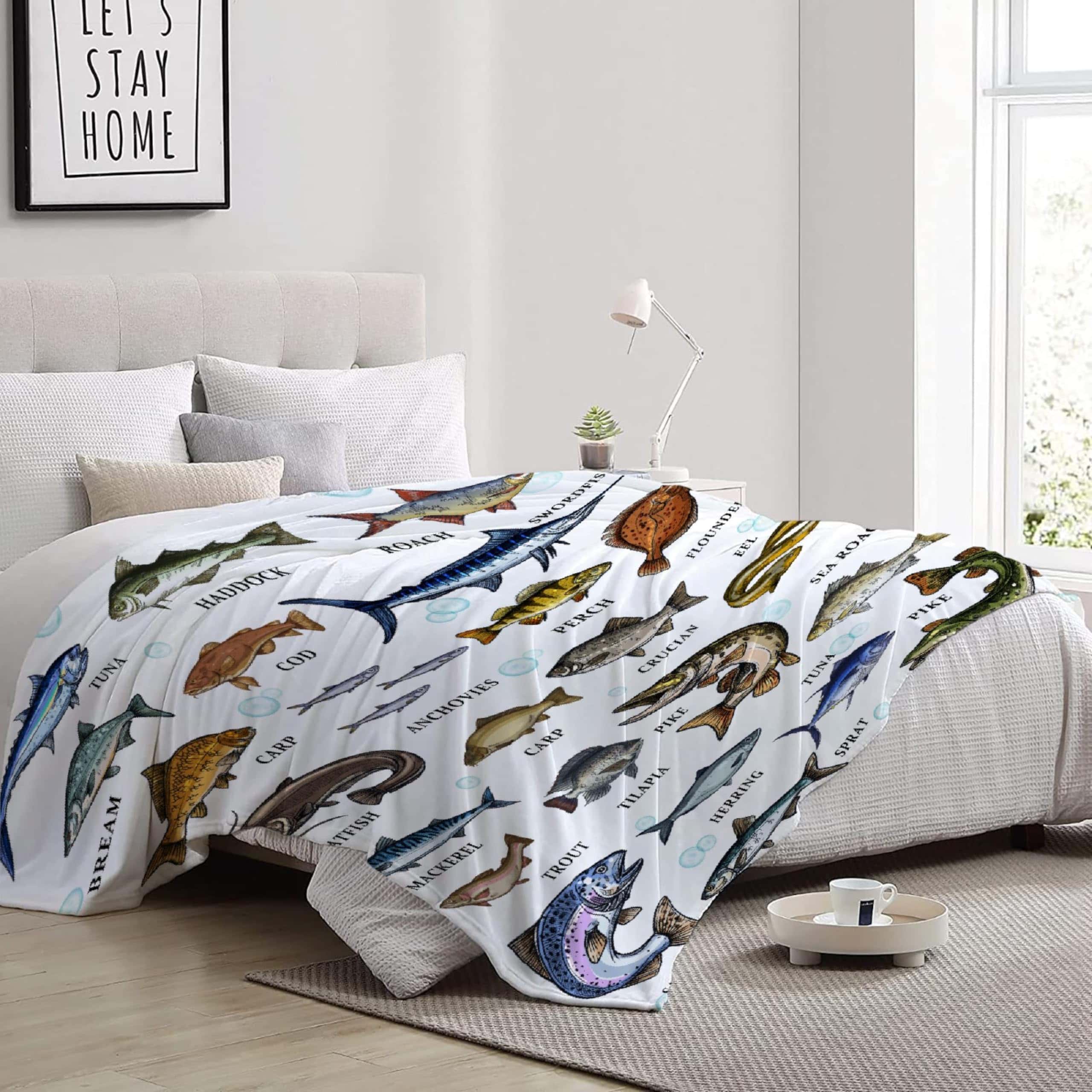 Manta de Lana de Franela con Diferentes Tipos de Peces,