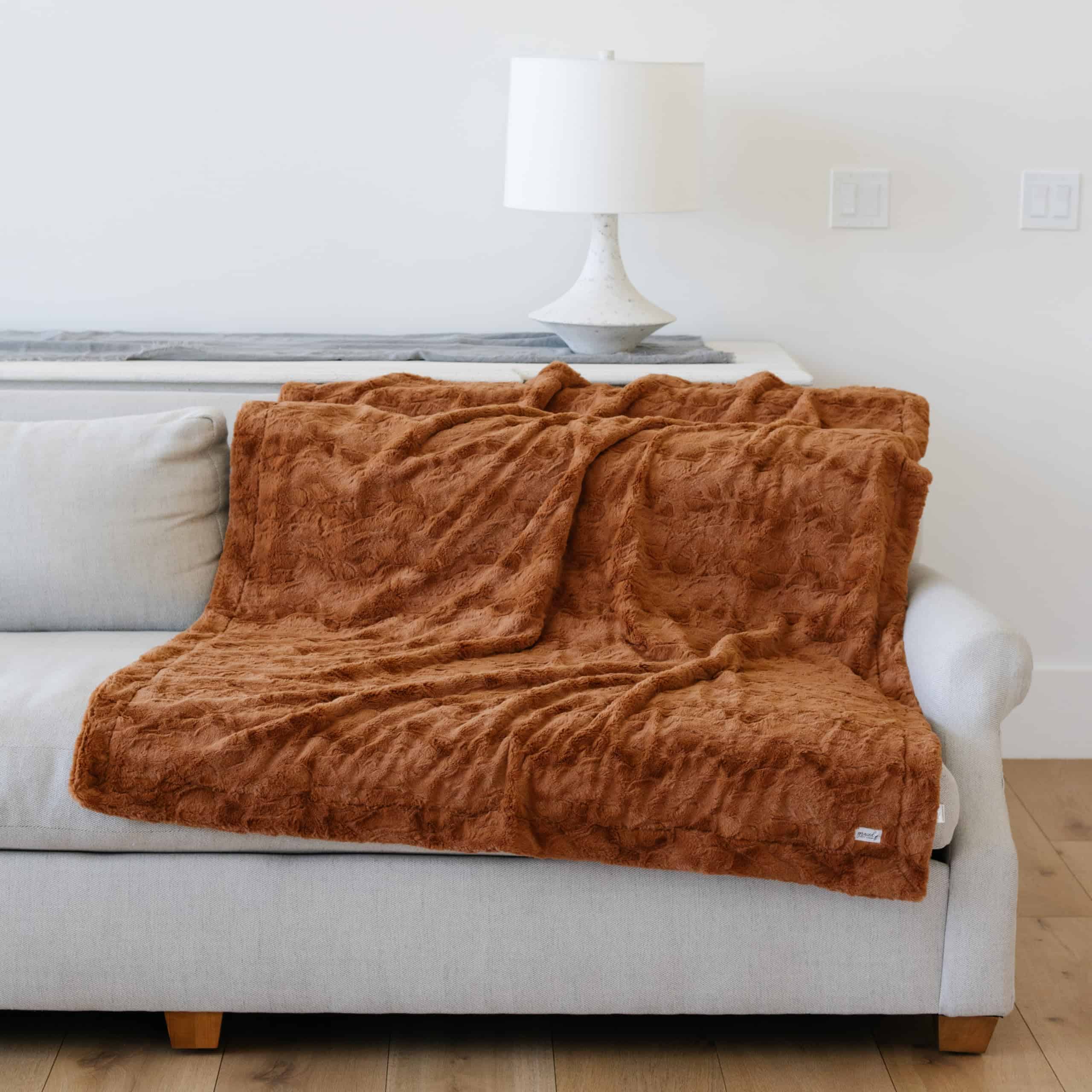 4. GRAN COMODIDAD ACOLCHONADA: Con unas generosas dimensiones de 50″ x 60″, nuestra manta ofrece una amplia cobertura para tu cama o sofá. Envuélvete en su suave lana de imitación, disfrutando de la comodidad y el estilo en un lujoso paquete.