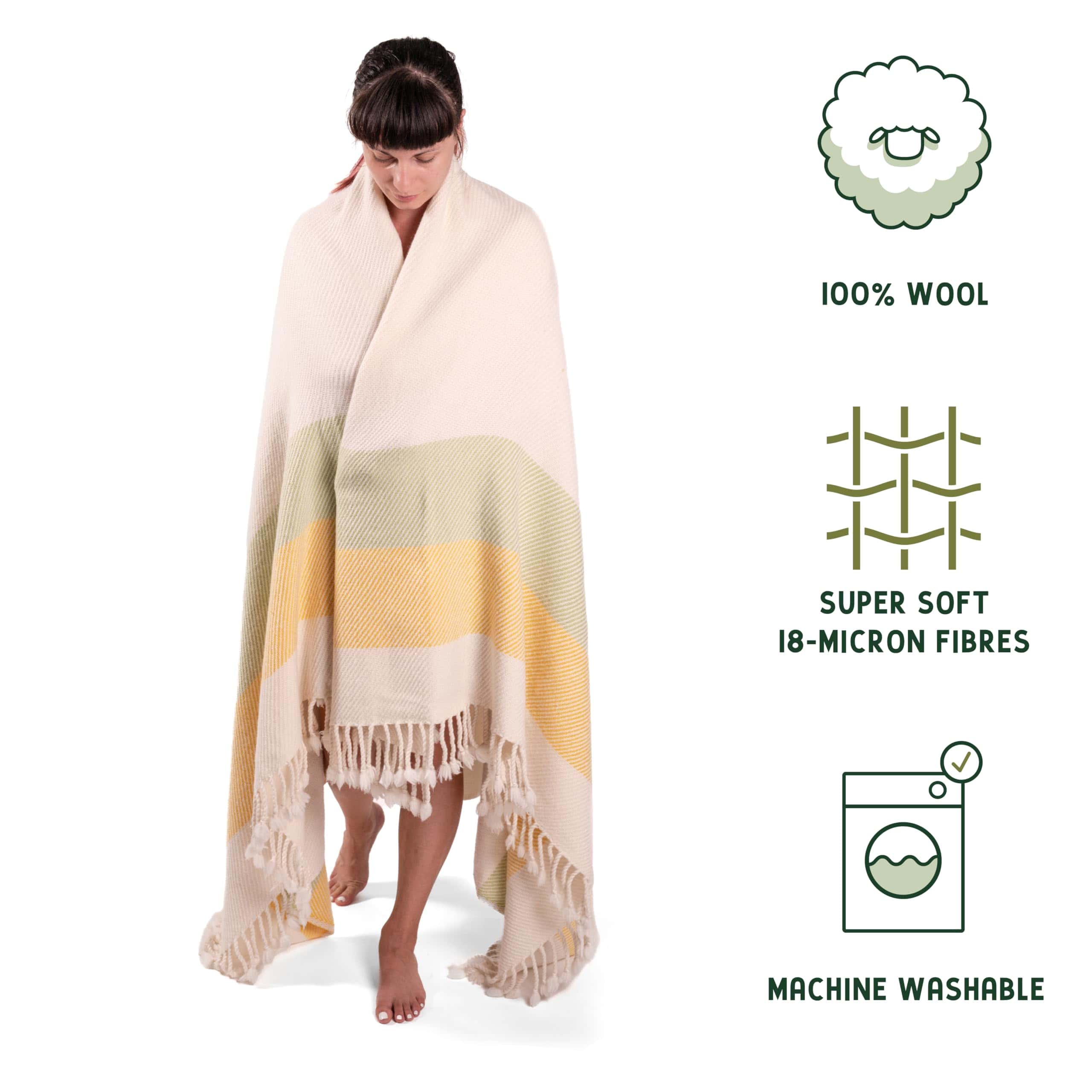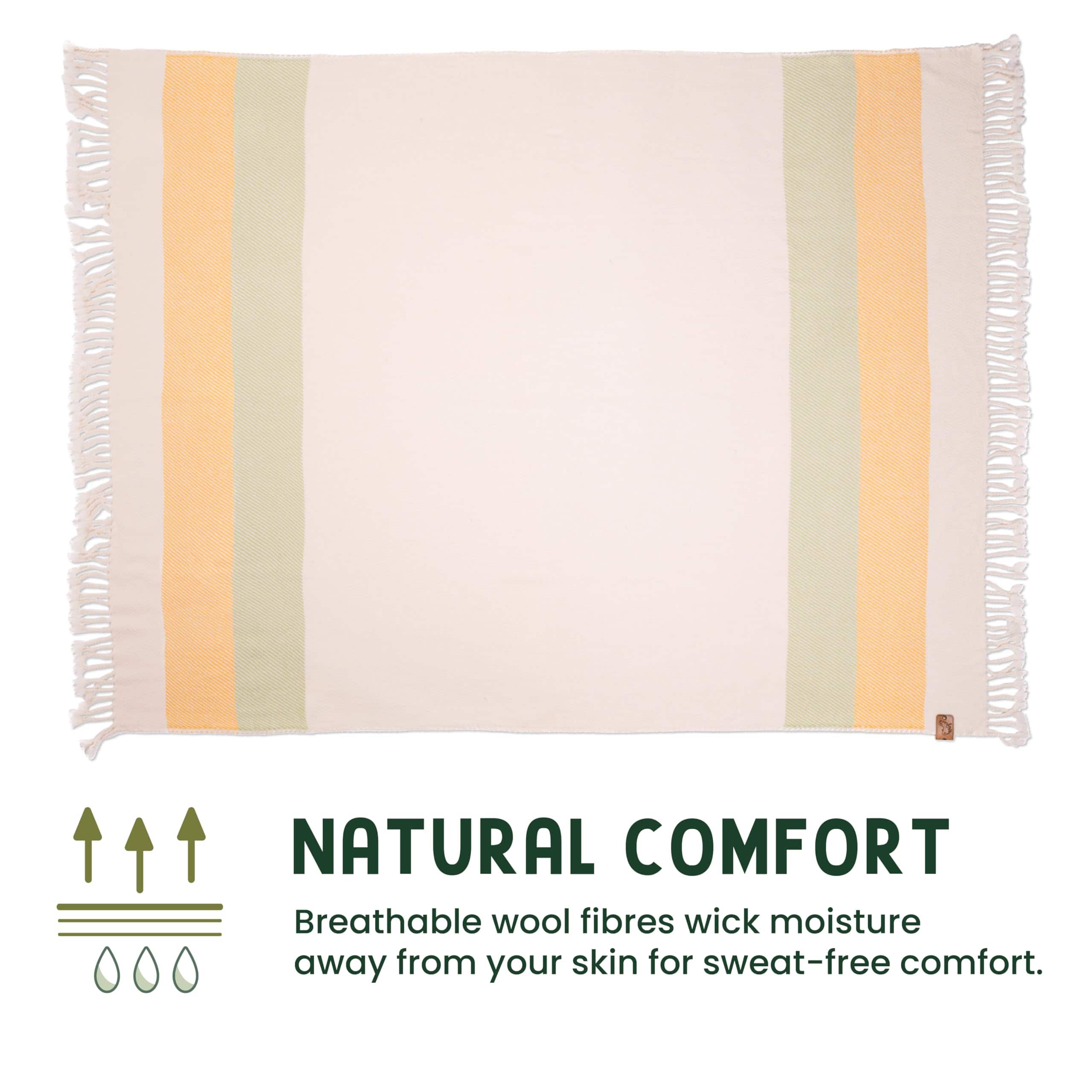 1. Calidez versátil durante todo el año: 400 GSM. 2. Contiene solo lana de merino premium de 18 micrones. 3. Hecha con lana de merino extra suave y amigable con la piel que no pica, no rasca ni irrita la piel. Acabado a mano de calidad, con borlas anudadas a mano. 4. Pequeños bolsillos de aire dentro de la lana atrapan el calor para regular la temperatura corporal y eliminar la humedad para una comodidad libre de sudor. 5. Resistente al desgaste y a las bolitas. Lavable a máquina para facilitar el cuidado.