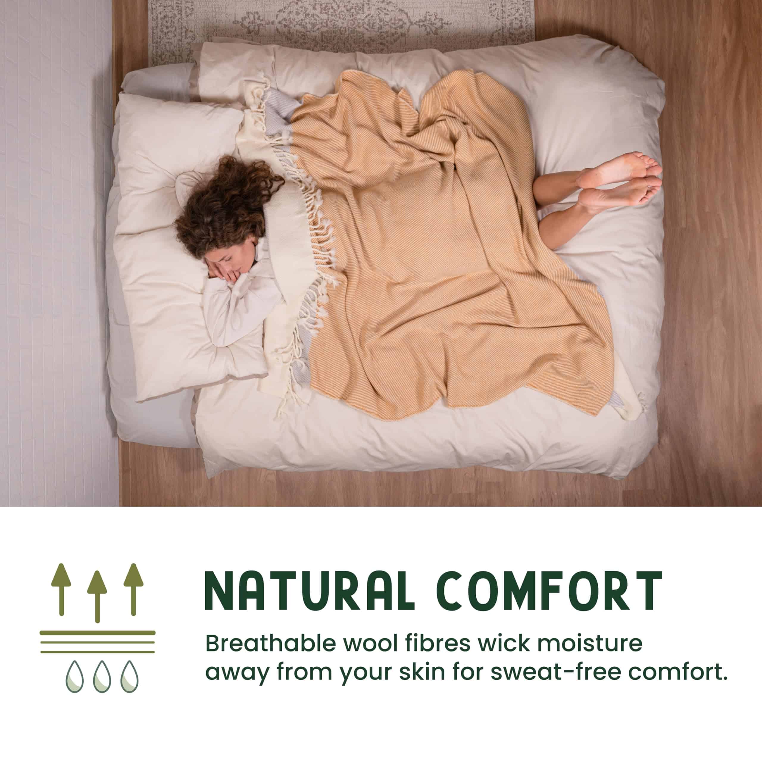 4. Pequeños bolsillos de aire dentro de la lana atrapan el calor para regular la temperatura corporal y eliminar la humedad para una comodidad sin sudor.