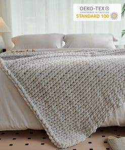 Hecha con un proceso de teñido ecológico que proporciona suavidad y comodidad para pieles sensibles. La certificación OEKO-TEX 100 garantiza que cada hilo es inofensivo para tu salud. Su diseño de patrón artesanal hace que sea un gran accesorio para decorar tu hogar, agregando un toque moderno y clásico a tu espacio, creando una sensación atemporal en tu habitación. Perfecta para abrazarse en el sofà, leer en la cama, ver televisión, o disfrutar de un tiempo acogedor con tu familia o mascotas. Realizada con hilos más fuertes y suaves diseñados para un uso prolongado. Se recomienda lavar a máquina en frío por separado. Secar a baja temperatura. No remojar. Se recomienda utilizar una bolsa de lavandería para evitar enredos y daños en la máquina. La manta es muy gruesa y voluminosa. Se utiliza una bolsa sellada al vacío para reducir el uso de materiales de embalaje. La compresión prolongada puede hacer que el patrón parezca menos esponjoso al abrir la bolsa, pero no te preocupes, los hilos de chenille se restaurarán a su apariencia natural rápidamente después de sacarlos de la bolsa.