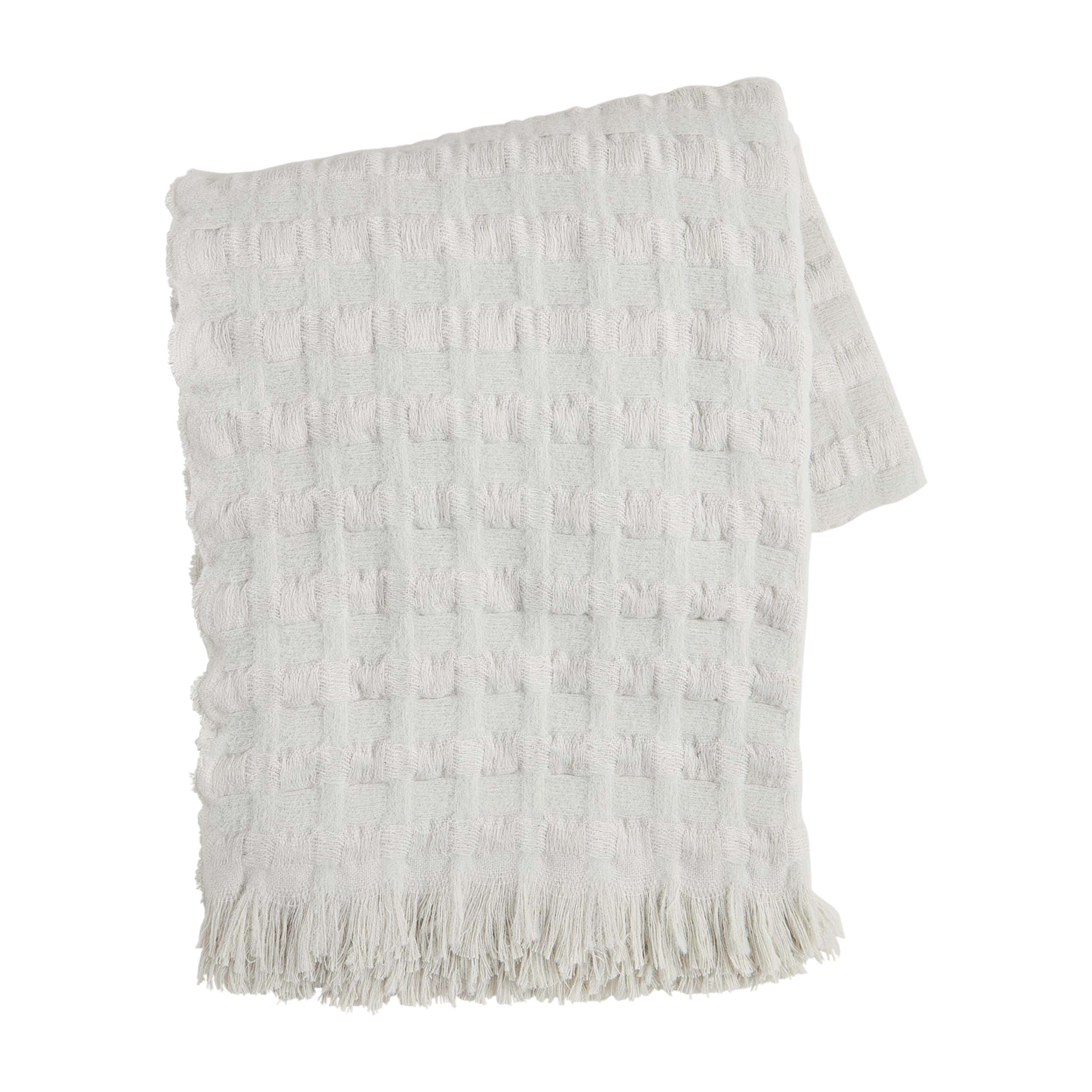 Manta de lana en tejido de gofre con borde de flecos.