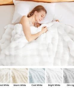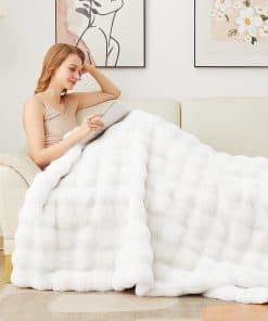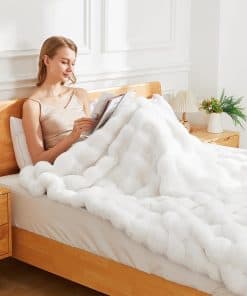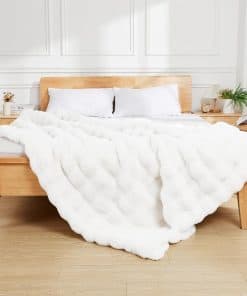 Manta de Lana Falsa Blanca Latepis, Manta Burbuja Acolchada