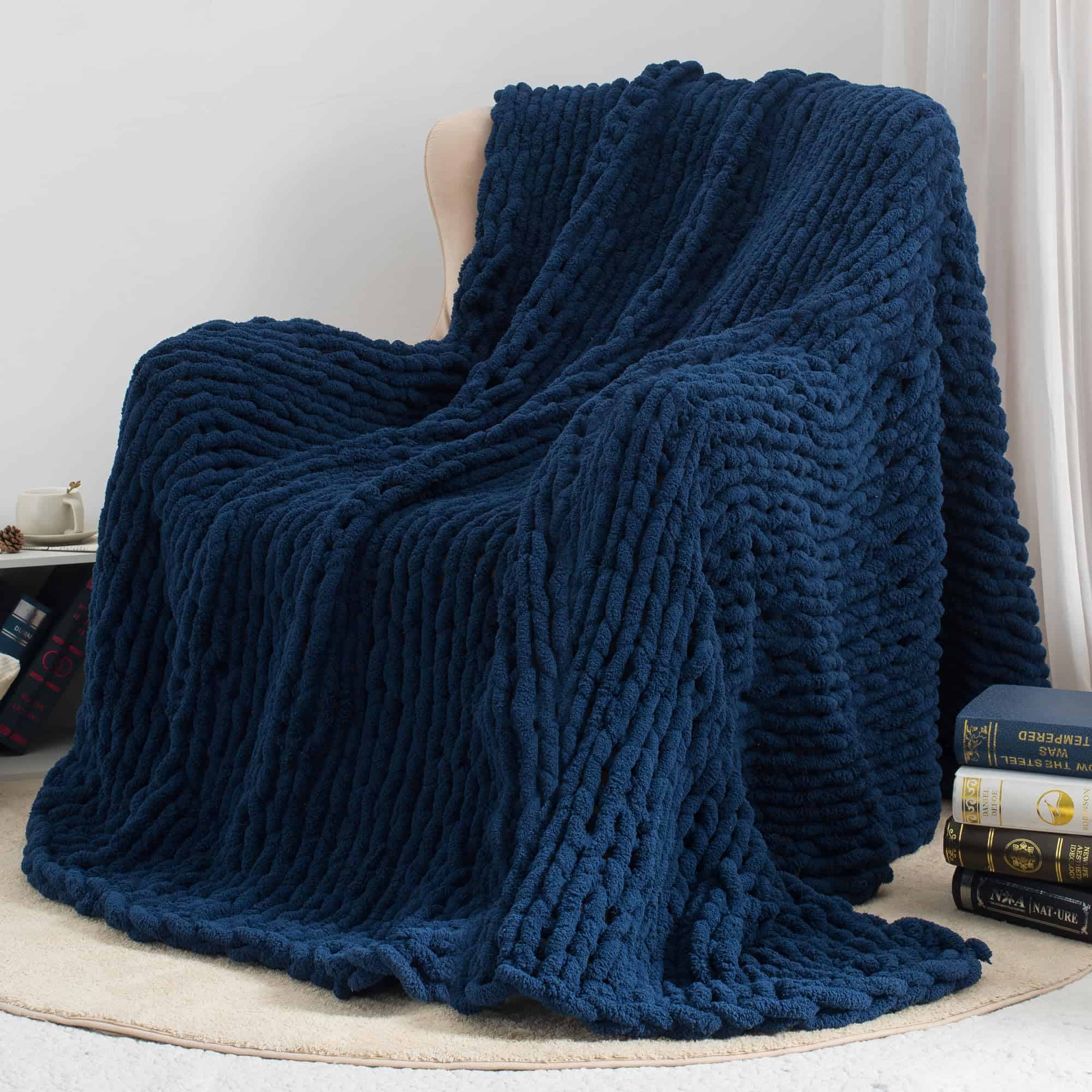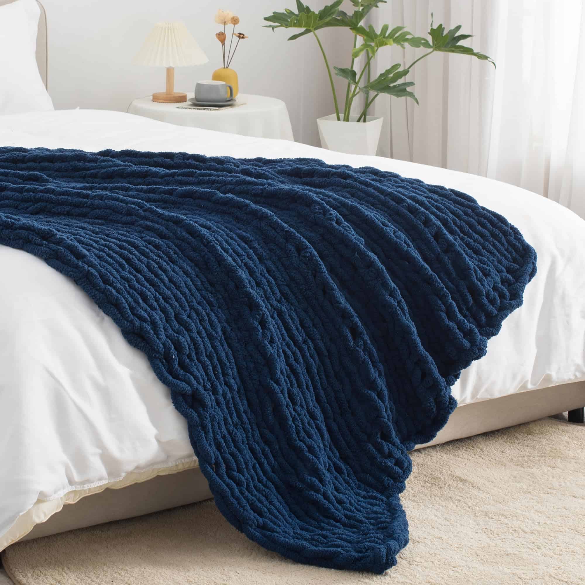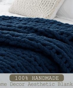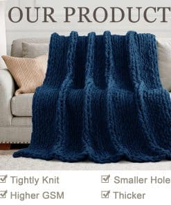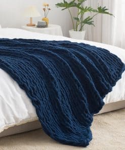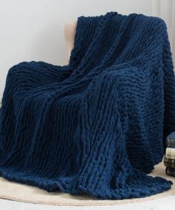 Manta de Lana Gruesa Chunky Knit 60″X 80″, 100% Hecha a