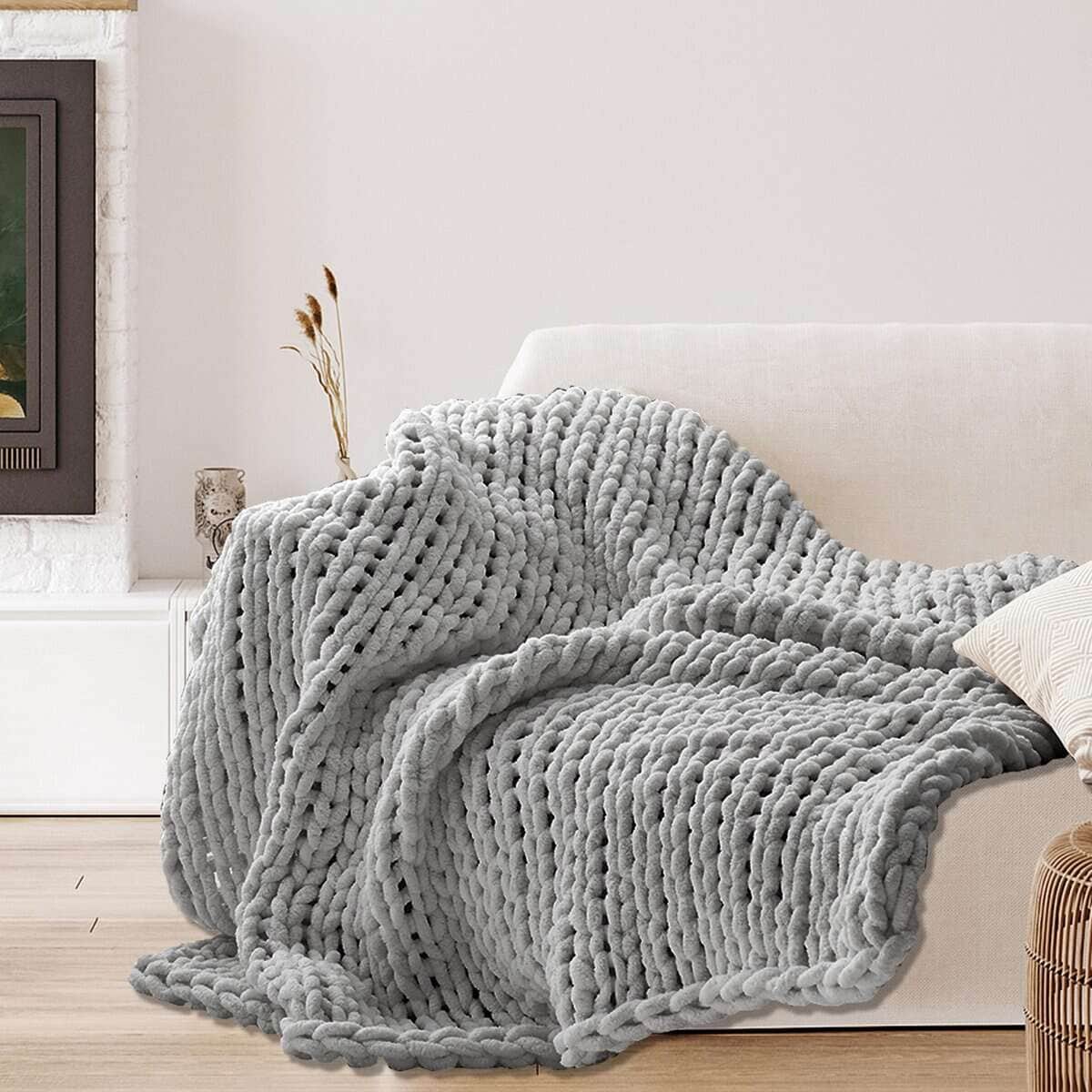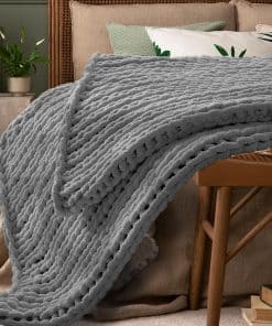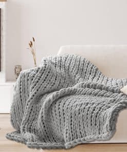 La manta de punto grueso de chenille hecha a mano te mantiene caliente sin ser excesivamente pesada. La característica especial perforada de estas mantas de punto gruesas y peludas también te mantiene caliente sin sobrecalentamiento, haciéndolas cómodas durante todo el año.