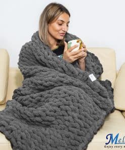 Esta manta de lana gruesa Mellie es el complemento perfecto para tu sala de estar. Confeccionada con lana ultra suave de punto de cable, esta manta de gran tamaño (127×152 cm) te ofrece comodidad y calidez. Puedes lavarla a máquina para una fácil limpieza. ¡Añade un toque acogedor a tu sofá con esta hermosa manta en gris oscuro!