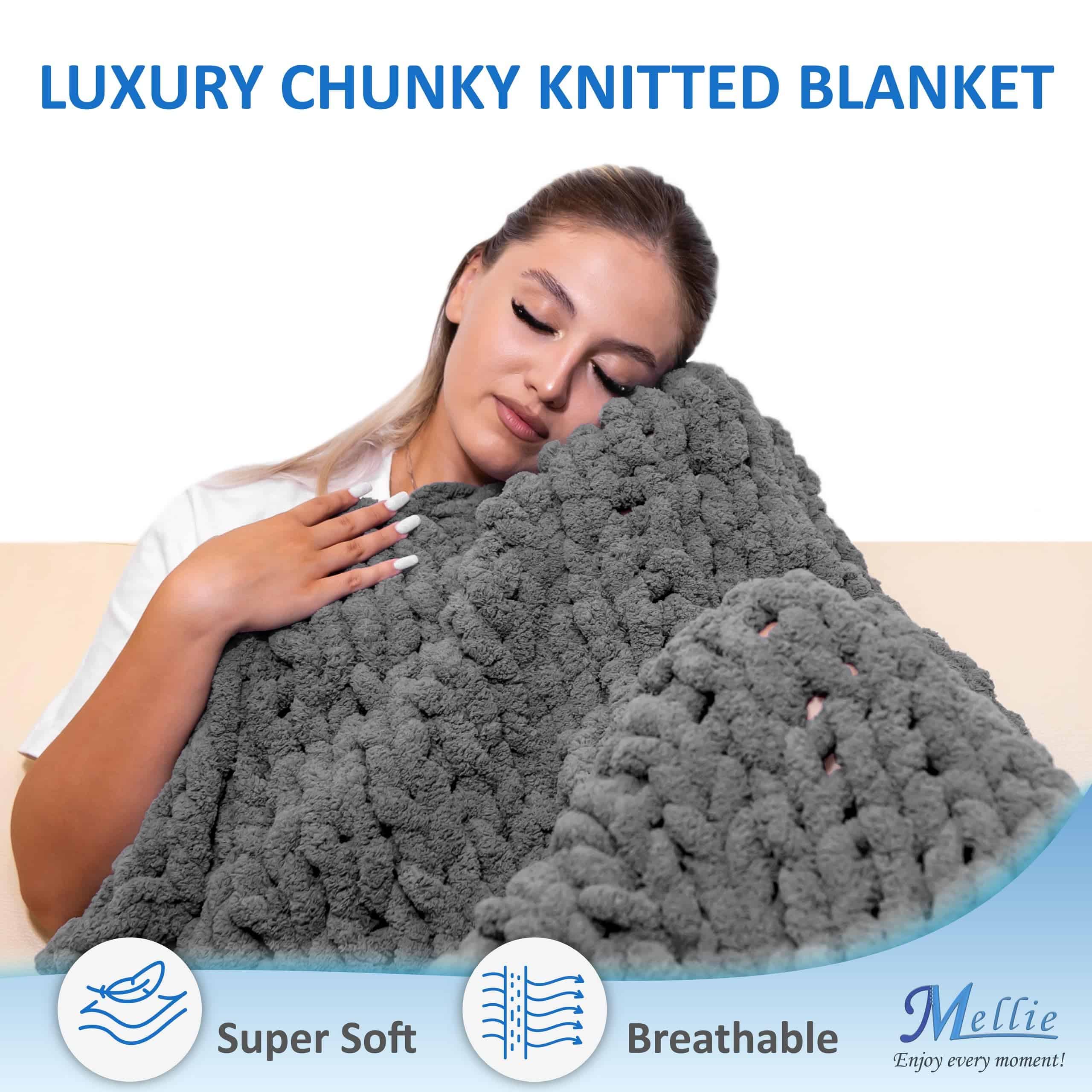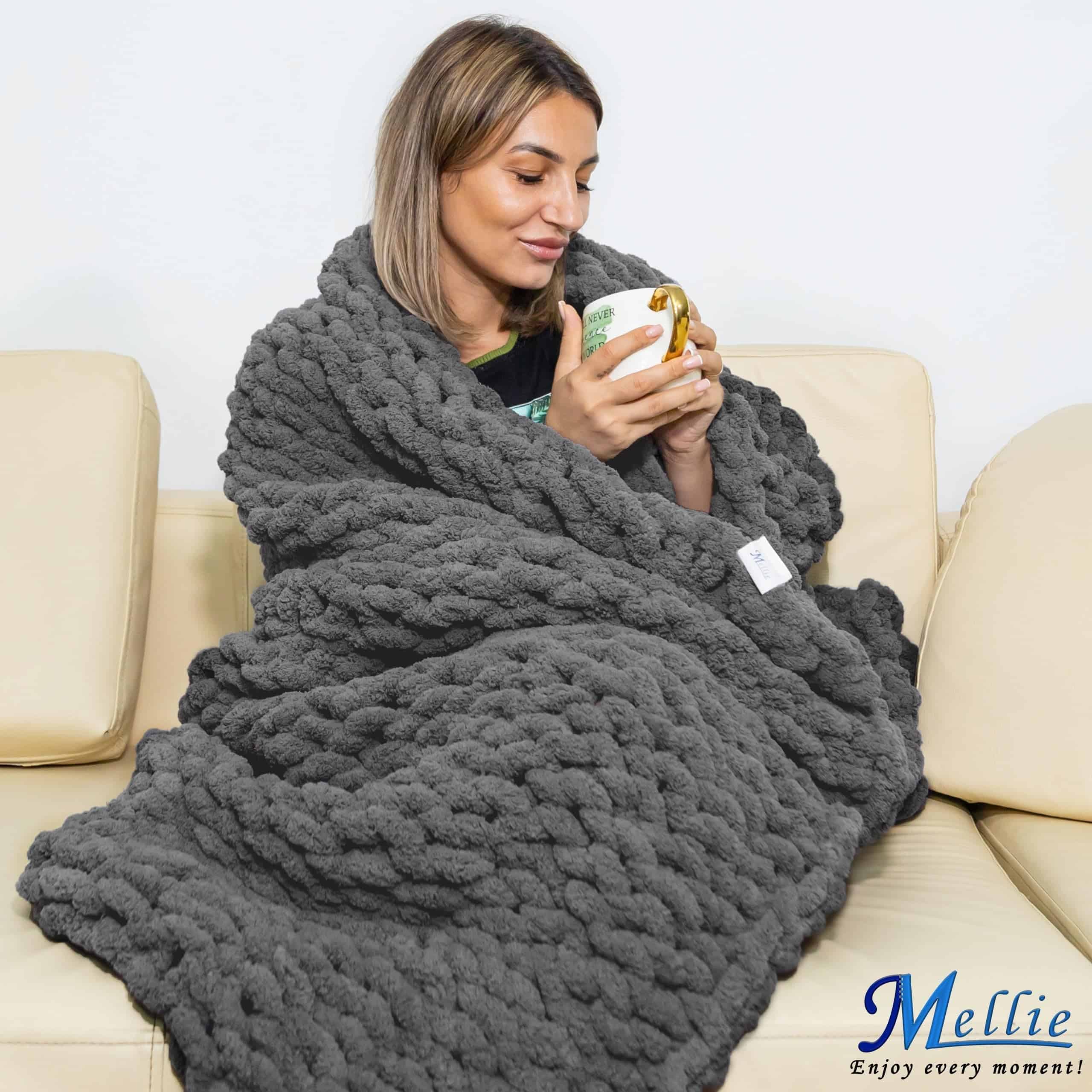 Manta de Lana Gruesa Mellie, Manta de Punto de Cable de