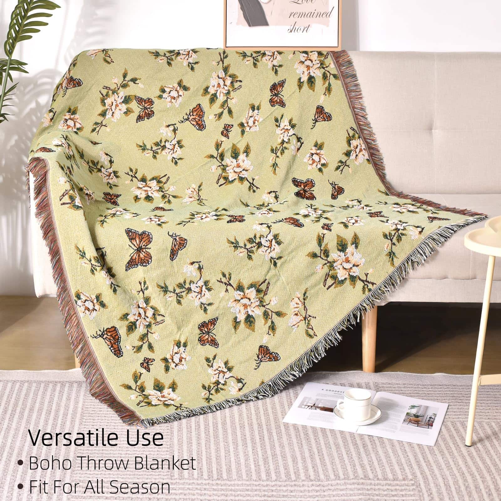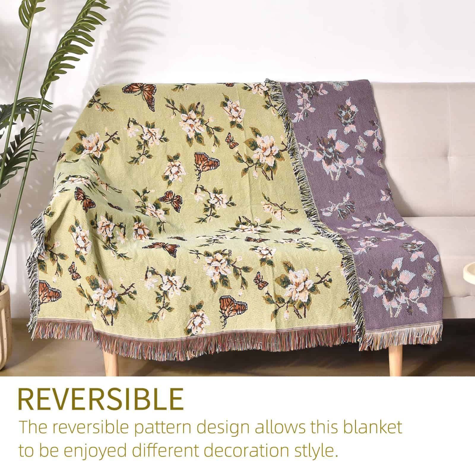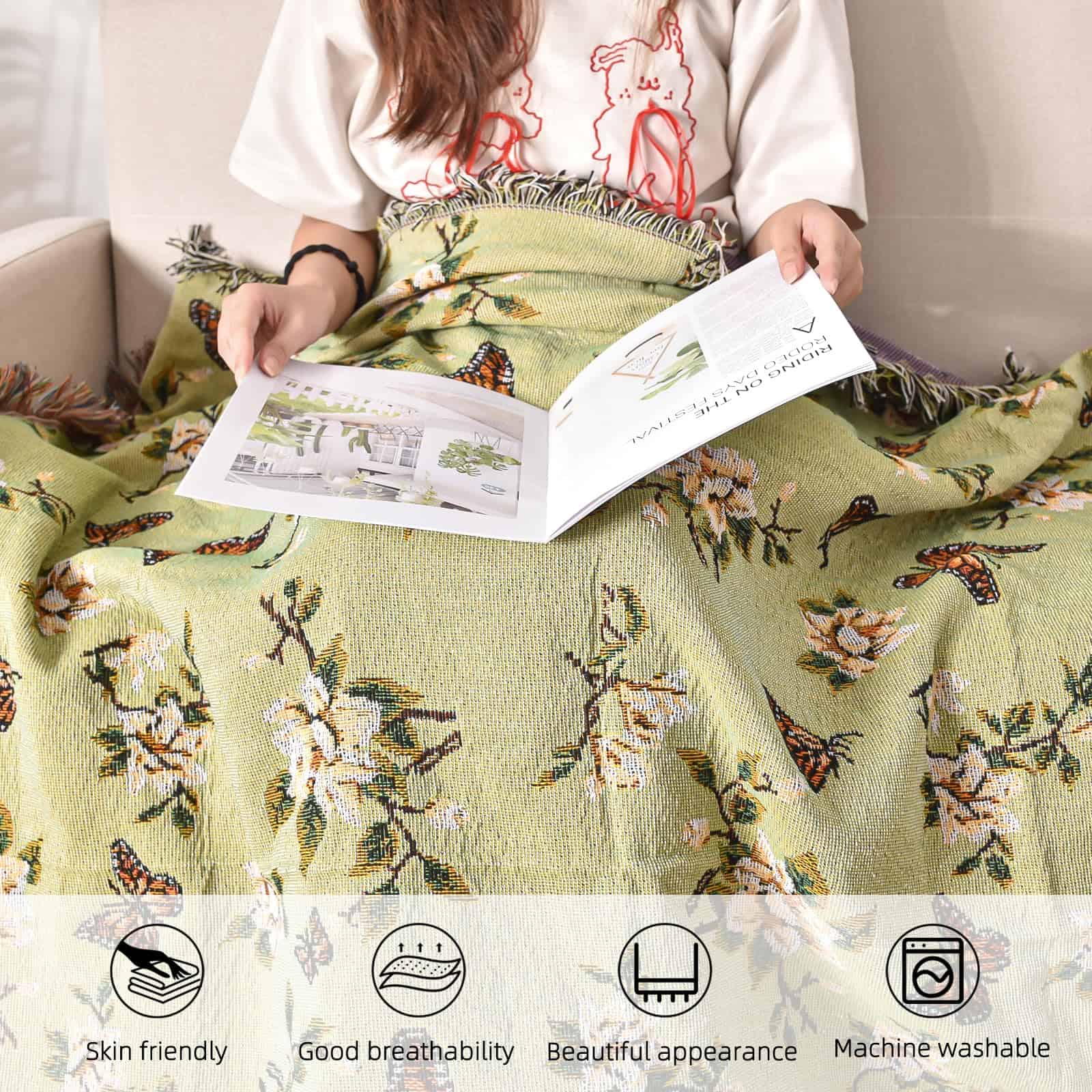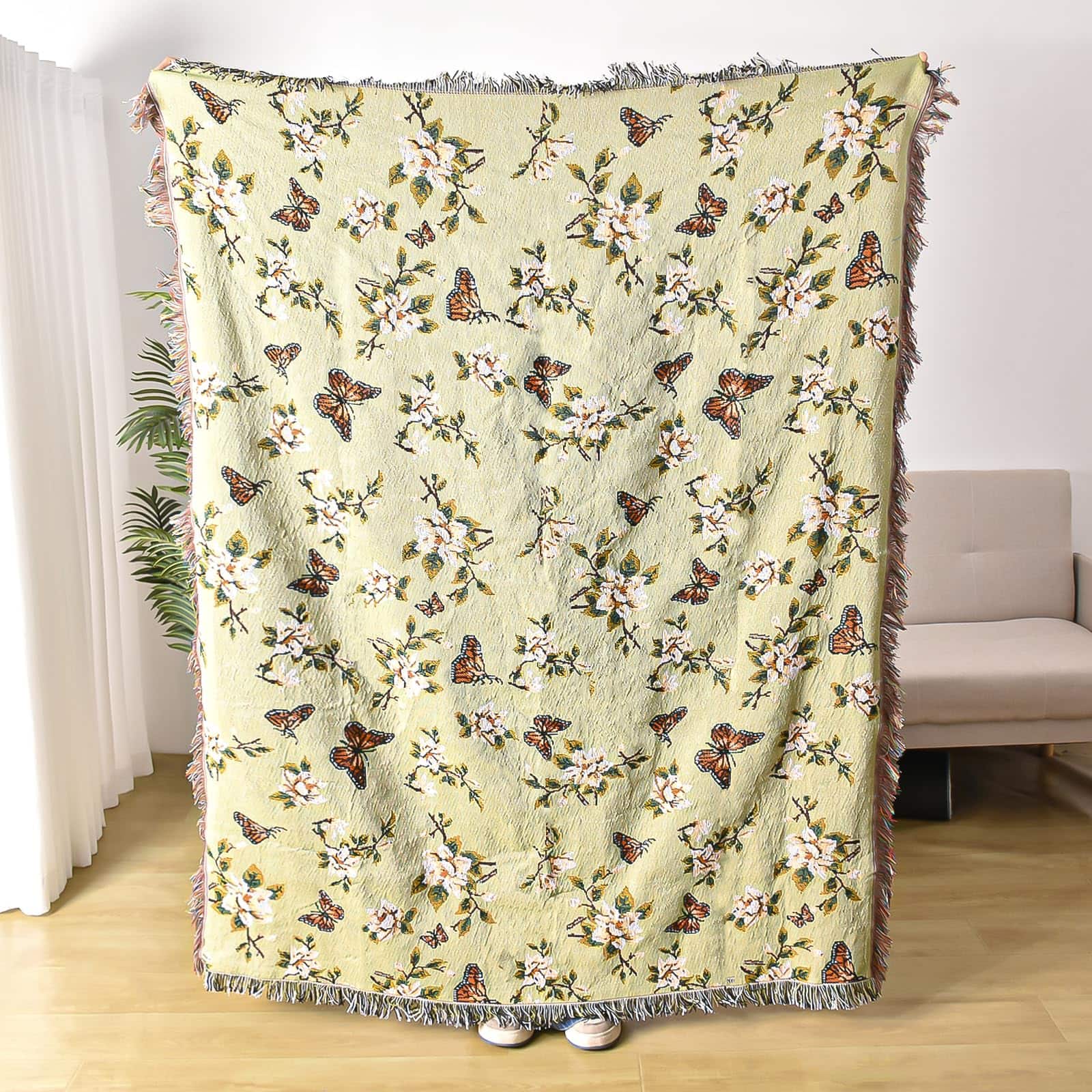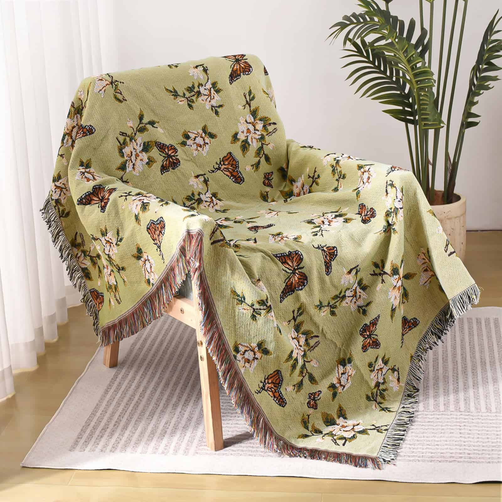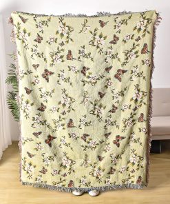 Manta de Lana Ksriylm con Estampado de Mariposas para Sofá,