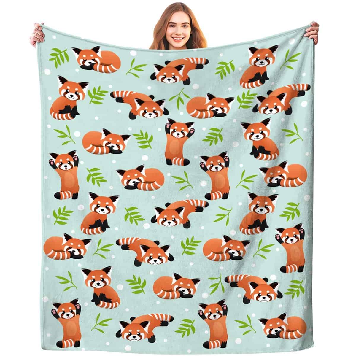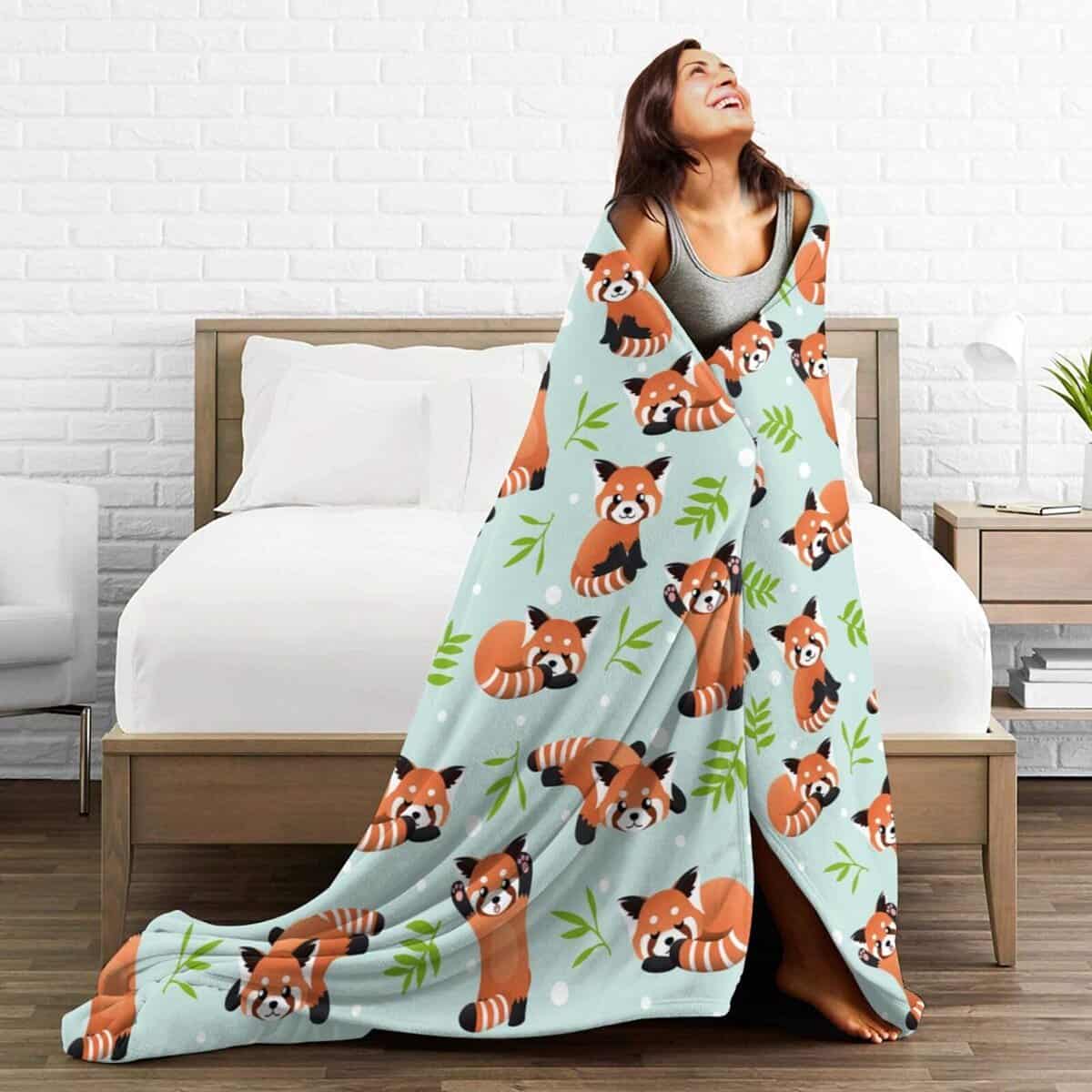 Manta de Lana Lindo Panda Rojo Suaves y Livianas para Niños