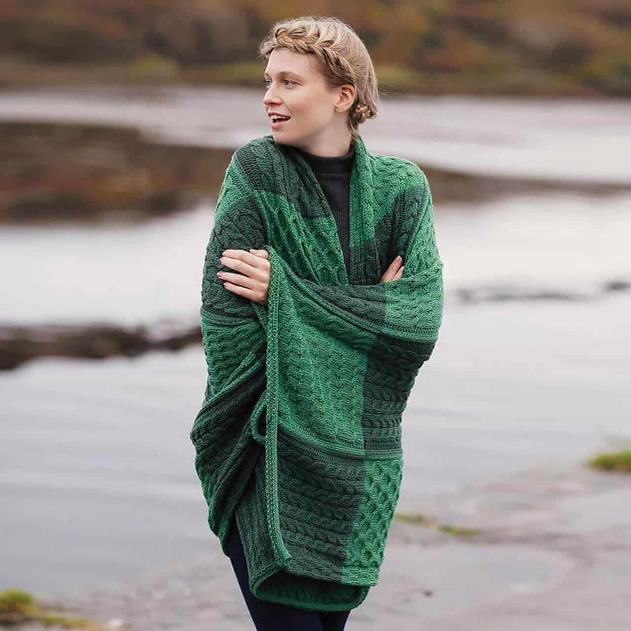 Manta de Lana Merino Patchwork Intarsia SAOL 100% Irlandesa