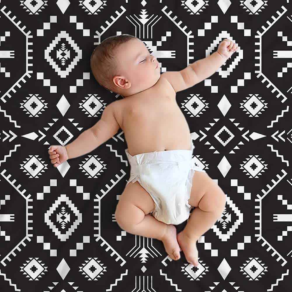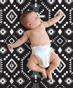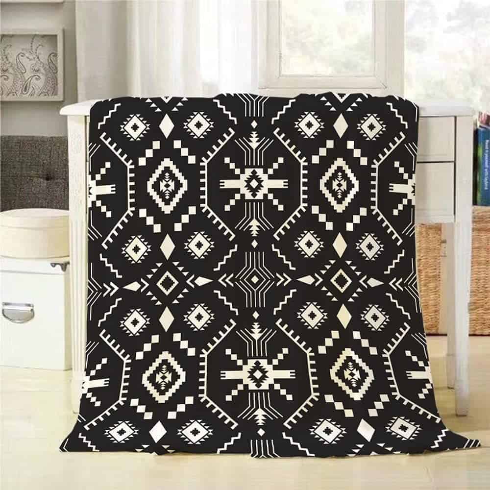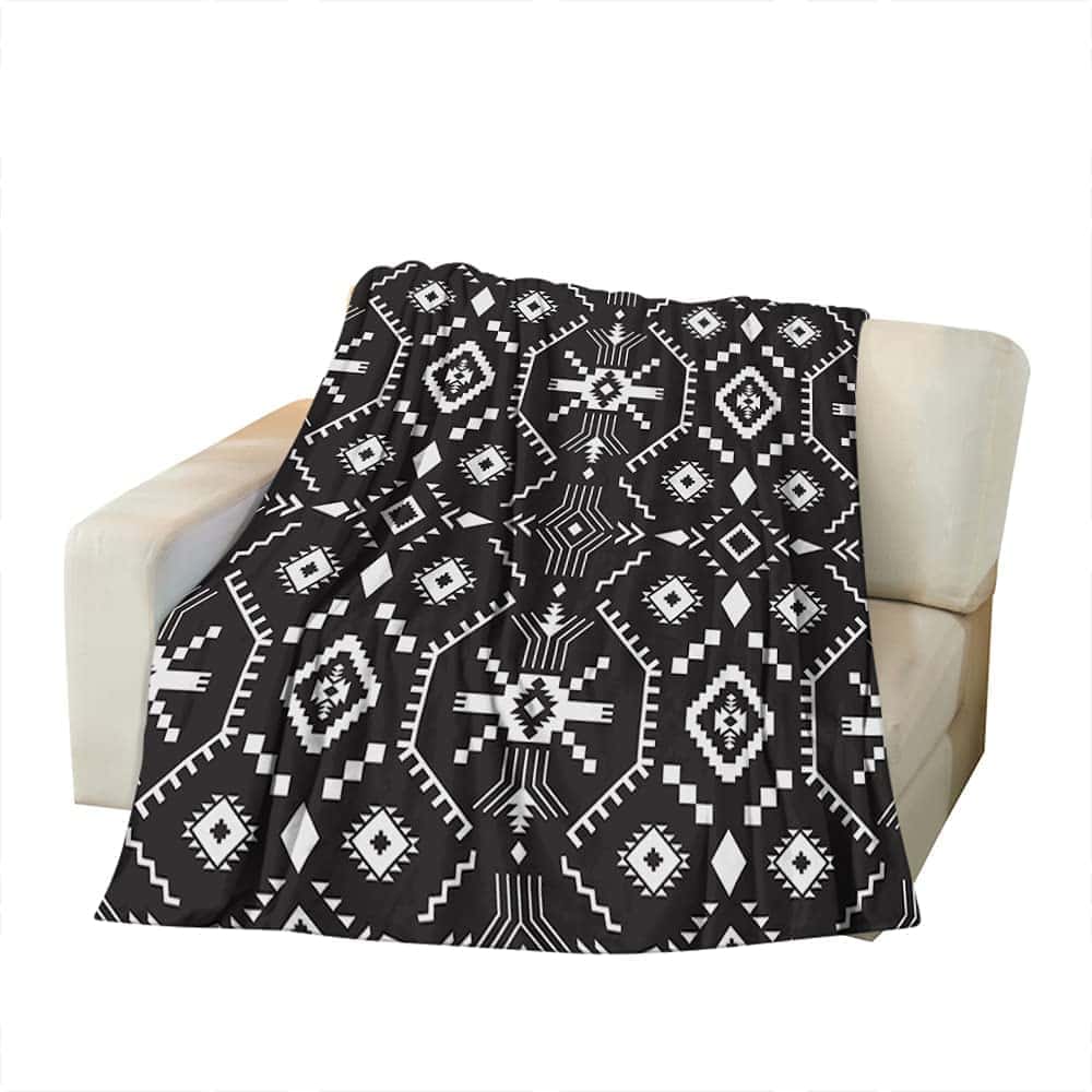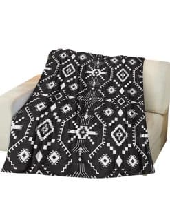 Manta de Lana Moslion en Blanco y Negro Estampado Navajo