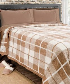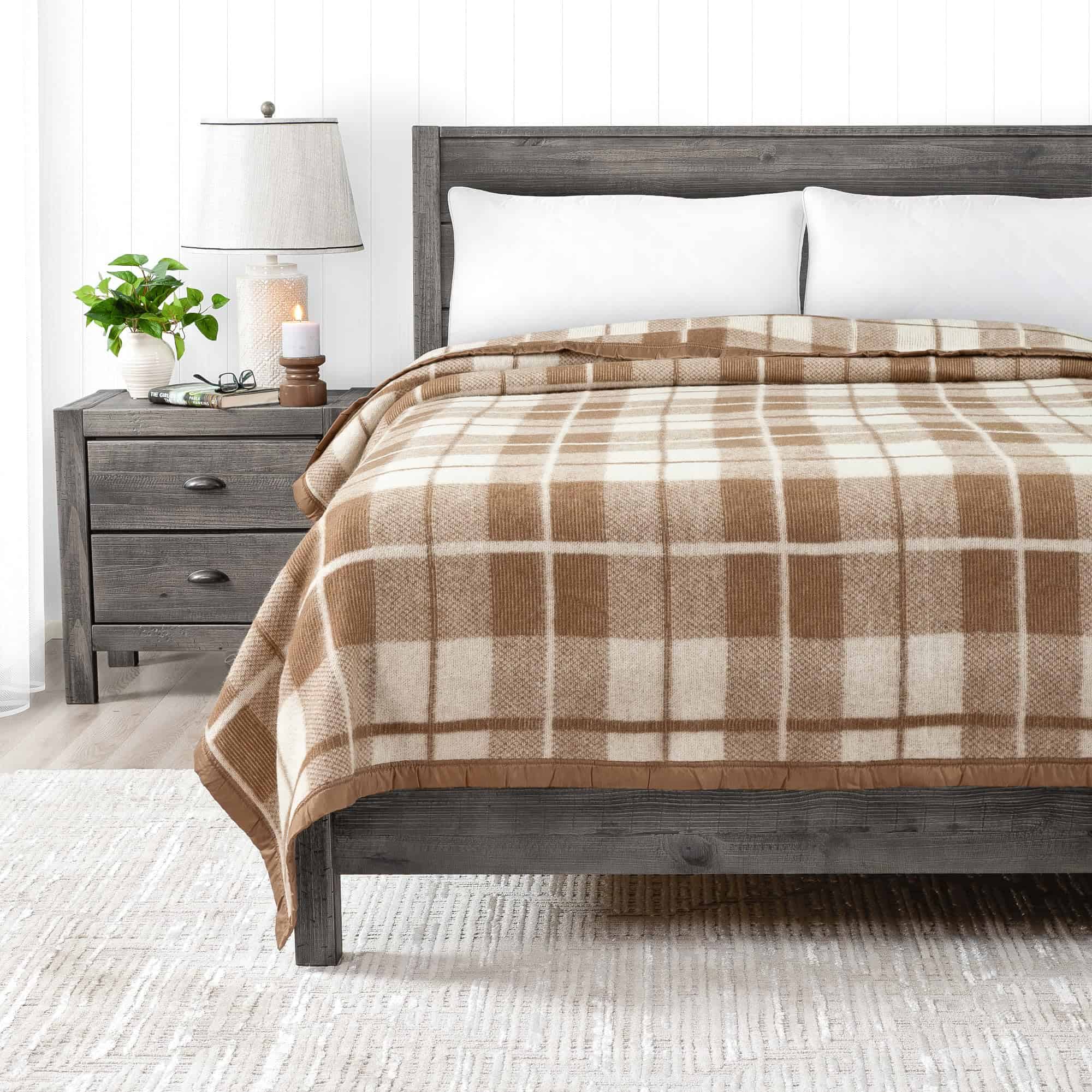 Manta de lana Poyet Motte Rivoli Sólida -Camel/Natural Plaid