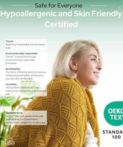 1. FIBRA DE TENCEL PREMIUM Hecho de 100% TENCEL, una fibra de Lenzing AG en Austria, conocida por su suavidad sedosa y cualidades transpirables. Proveniente de madera de eucalipto de origen sostenible, este material lujoso garantiza la regulación natural de la humedad, manteniéndote fresco y cómodo durante todo el año. TENCEL es biodegradable y respetuoso con el medio ambiente, lo que lo convierte en la elección perfecta para hogares eco-conscientes. 2. DISEÑO SUAVE Y TRANSPIRABLE Disfruta de un confort inigualable con el diseño de encaje de ganchillo ligero de esta manta. Su textura suave acaricia suavemente tu piel mientras que su material transpirable evita el sobrecalentamiento, haciéndolo ideal para abrazarse en una noche fría o mantenerse fresco durante días más cálidos. 3. VERSÁTIL Y ELEGANTE Eleva la decoración de tu hogar con esta elegante manta estilo boho. Perfecta para colocarla sobre un sofá, cama o sillón, añade un toque de sofisticación a cualquier habitación. Úsala para descansar, dormir una siesta o como un accesorio decorativo para una estética moderna y chic. 4. ENVASE LISTO PARA REGALAR Viene en una caja de regalo reutilizable y duradera, haciéndola un regalo perfecto para cumpleaños, inauguraciones, bodas o aniversarios. El diseño del envase pensado ayuda a realzar su atractivo, convirtiéndola en un regalo inolvidable para tus seres queridos o para ti mismo. 5. ETIQUETA DE CUERO VEGANO Presenta una elegante etiqueta principal de cuero vegano, esta manta combina la elegancia contemporánea con la sostenibilidad. La etiqueta es un sello distintivo de su diseño ético, mostrando su calidad premium y valores ecológicos mientras mantiene una estética atemporal. 6. CERTIFICADO OEKO-TEX Certificado por Oeko-Tex Standard 100 Clase 1, garantizando que la manta está libre de sustancias nocivas y es segura para pieles sensibles. Esta certificación refleja un compromiso con la calidad y la salud, brindando tranquilidad para ti y tu familia. 7. PERFECTA PARA TODAS LAS ESTACIONES Ligera y transpirable, la manta Emily es lo suficientemente versátil para usarla durante todo el año. Mantente acogedor durante los meses más fríos o disfruta de su efecto refrescante en climas más cálidos. Su diseño se adapta a tu comodidad en cada estación y ambiente. 8. LUJO CONSCIENTE DEL MEDIO AMBIENTE Producida con la sostenibilidad en mente, la manta Emily está hecha de materiales ambientalmente responsables. Las fibras de TENCEL garantizan un bajo impacto ambiental, mientras que el empaque reutilizable y el diseño vegano la convierten en un lujo libre de culpa. 9. EXCELENCIA ARTESANAL Orgullosamente hecha en Turquía por artesanos expertos, esta manta de ganchillo refleja décadas de experiencia textil turca. Cada pieza está elaborada con precisión, combinando técnicas tradicionales con innovación moderna para un producto superior. 10. HECHA DE MANERA SOSTENIBLE EN TURQUÍA Elaborada en la moderna fábrica sostenible de Evteks en Denizli, Turquía, esta manta representa un compromiso con la fabricación eco-friendly. La fábrica prioriza la eficiencia energética y la reducción de residuos, asegurando que cada producto se alinee con estándares éticos y ambientales.