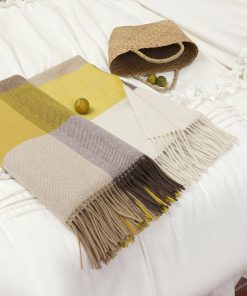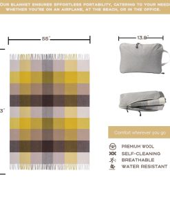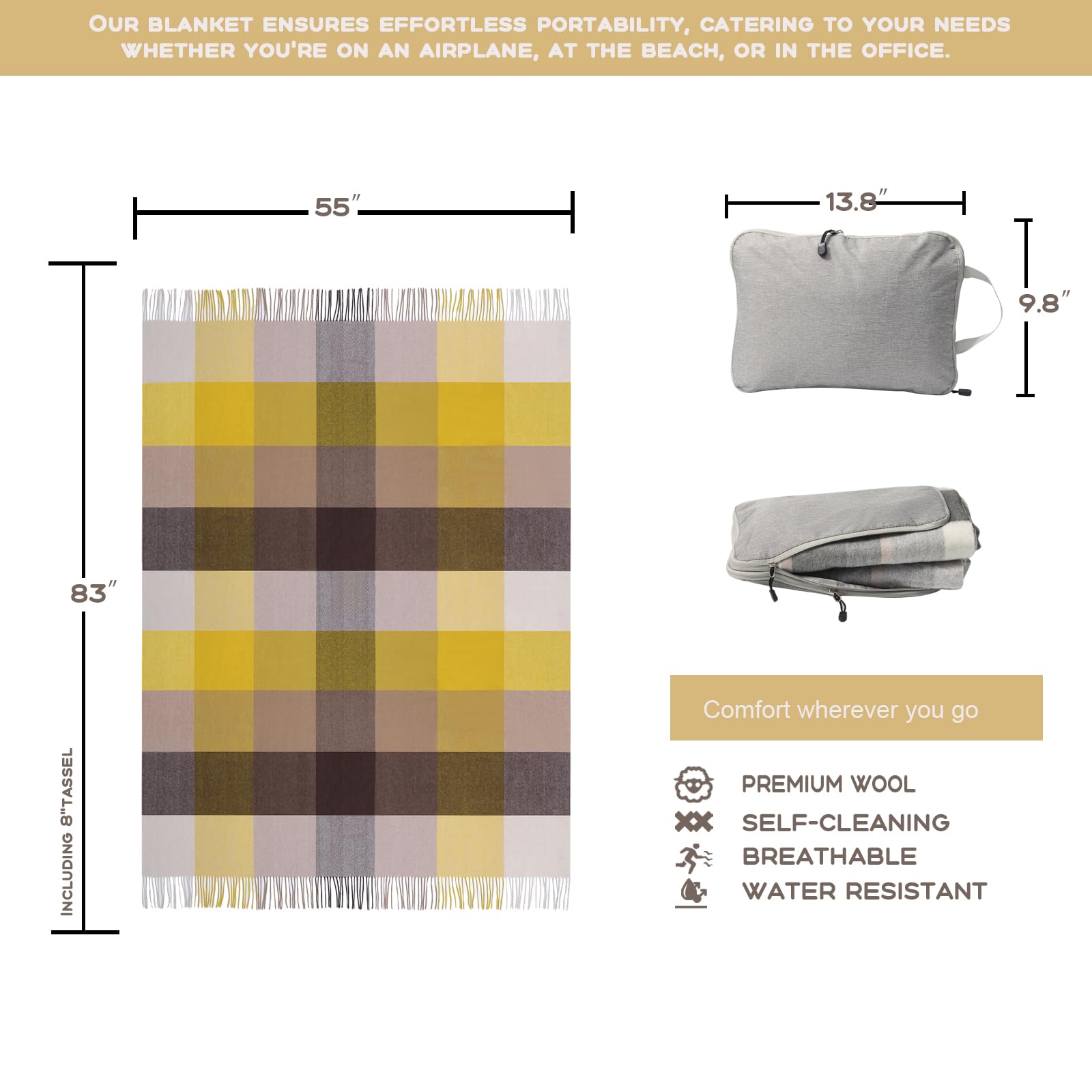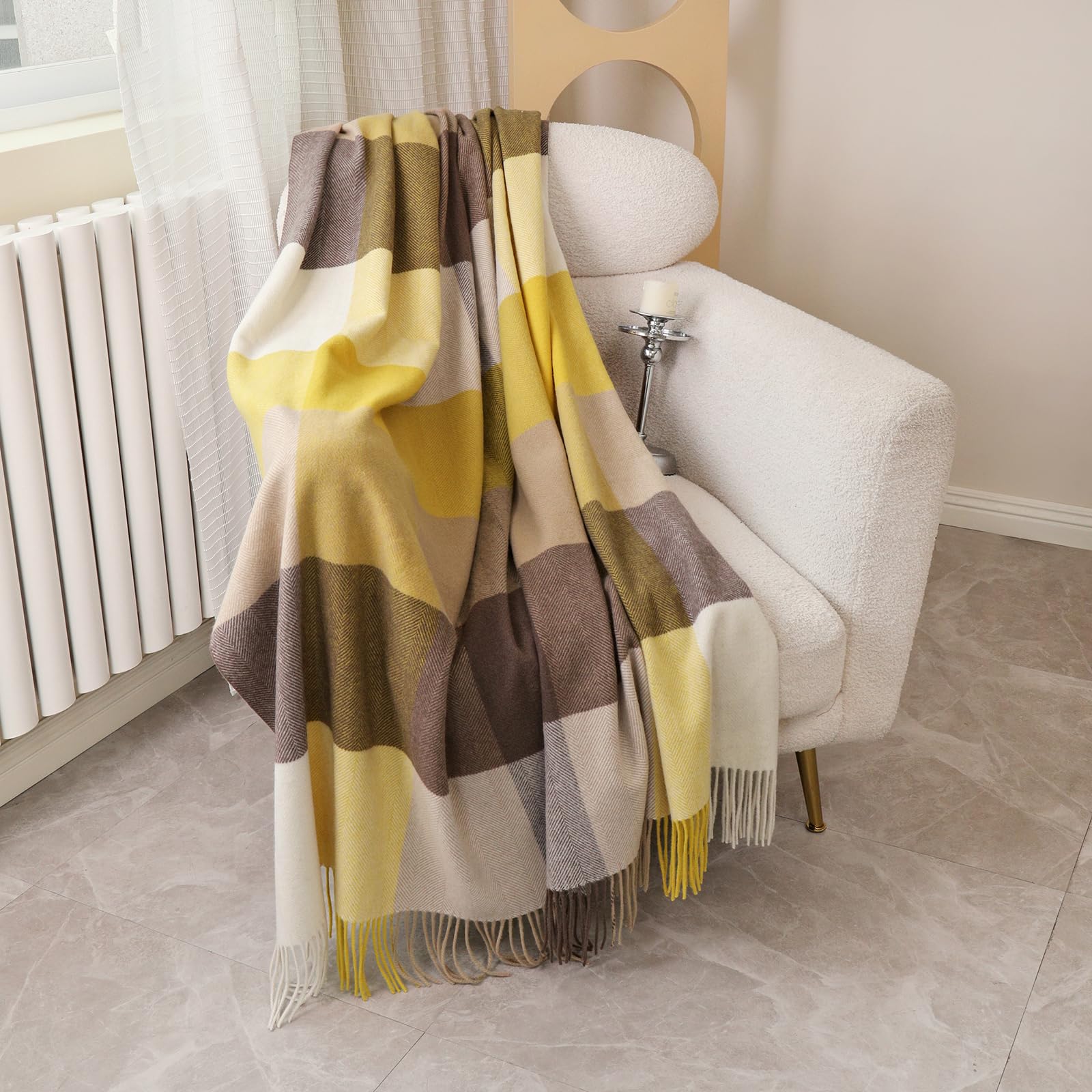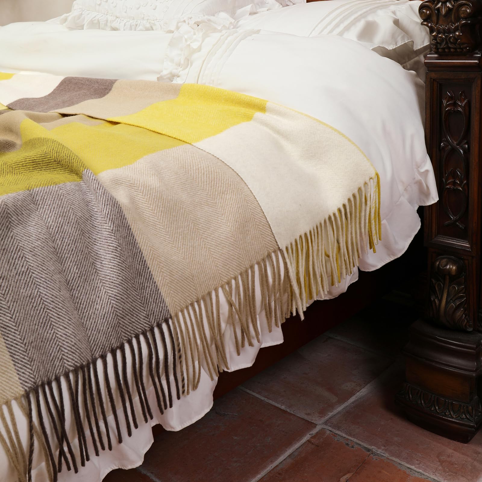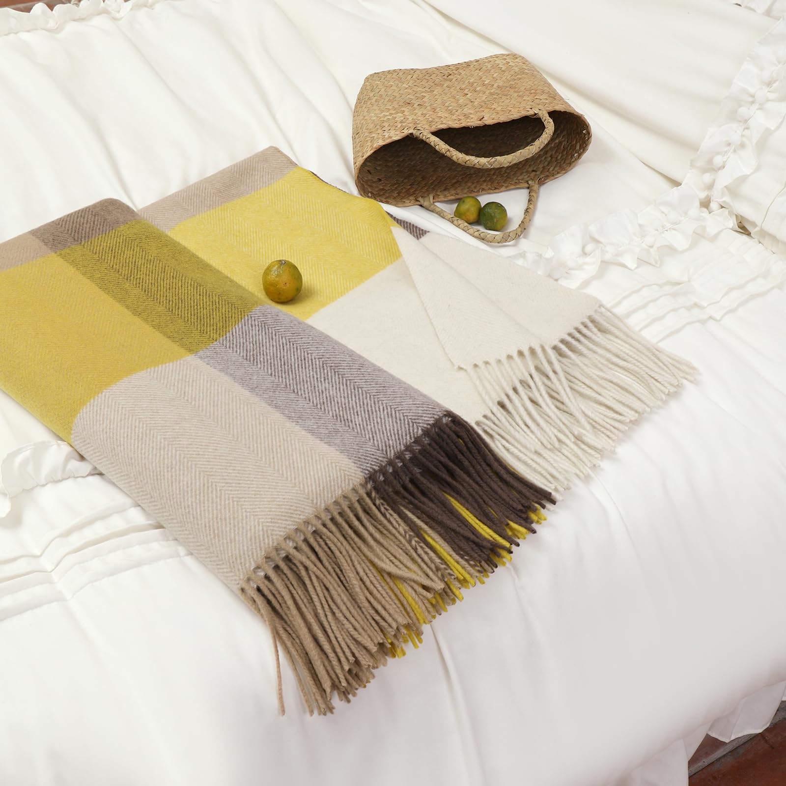 Manta de Lana Pura Temminc para Sofá, Suave -Amarillo Marrón