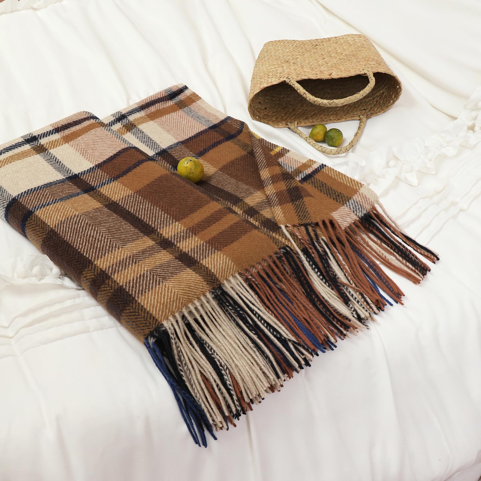 Manta de Lana Pura Temminc para Sofá, Suave -Café