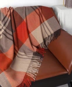 Manta de Lana Pura Temminc para Sofá, Suave -Grisáceo Naranj