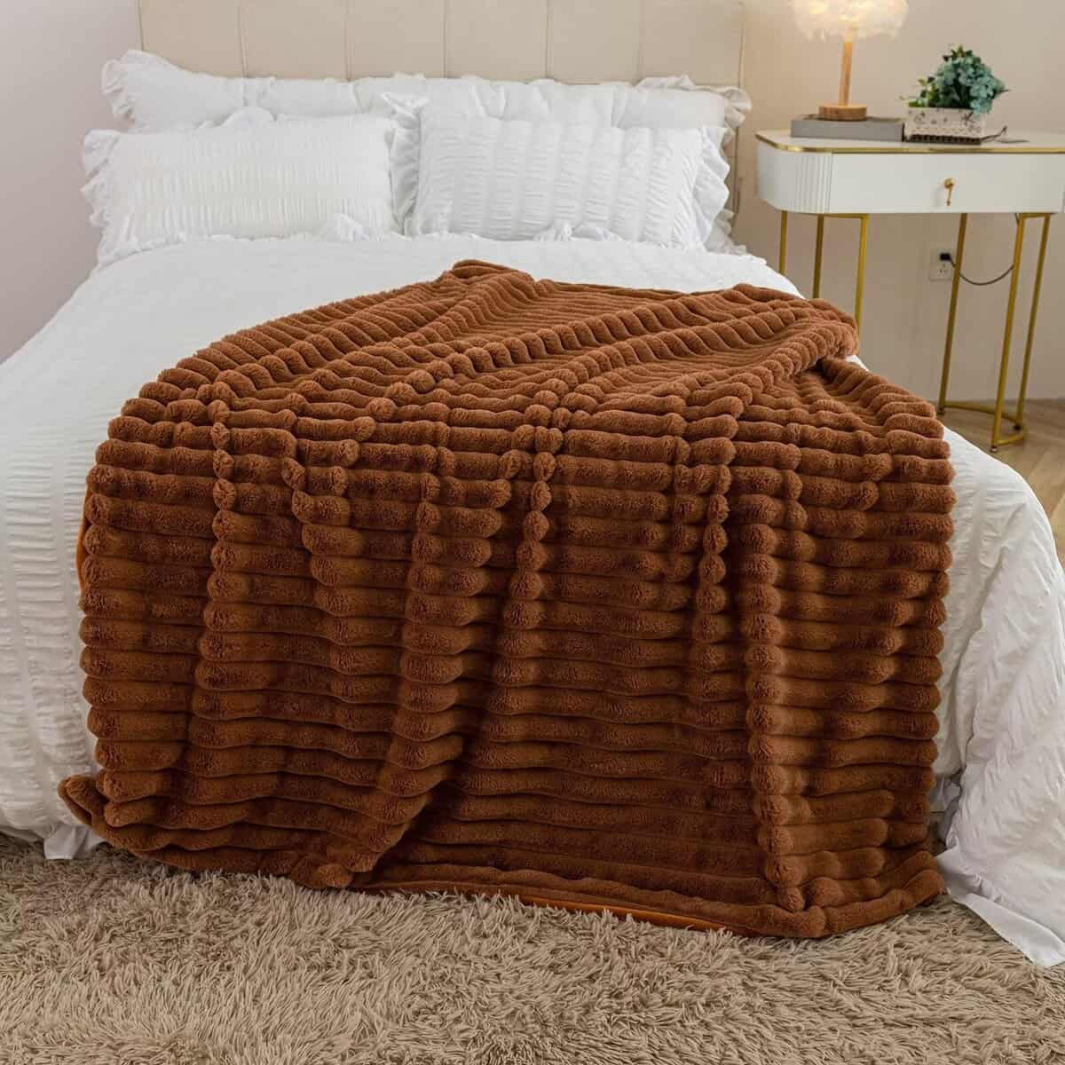 Con un diseño de rayas elegante, esta manta suave no solo es funcional y hermosa, sino que también es una declaración de estilo para cualquier habitación. Su tacto mullido y su aspecto lujoso pueden adaptarse fácilmente a cualquier decoración y elevar el estilo de tu dormitorio, sala de estar u oficina.