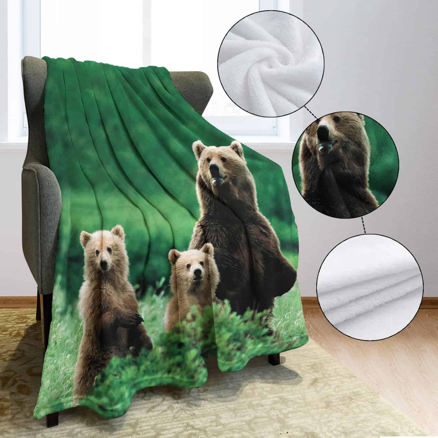 Manta de Lana Suave y Acogedora para Sofá, Osos Marrones,