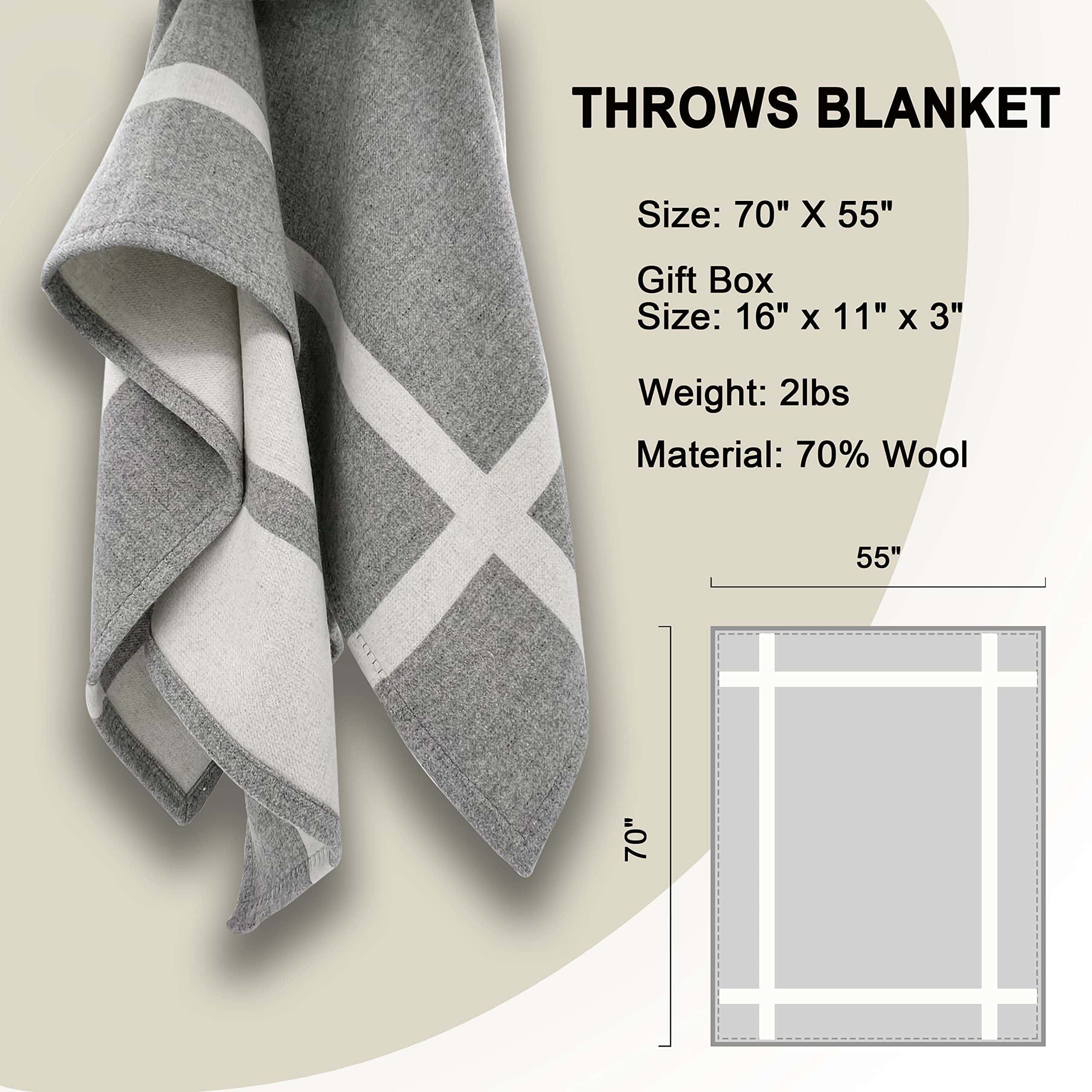 Manta de Lana y Mantas 90% Lana Manta Cálida -Gris