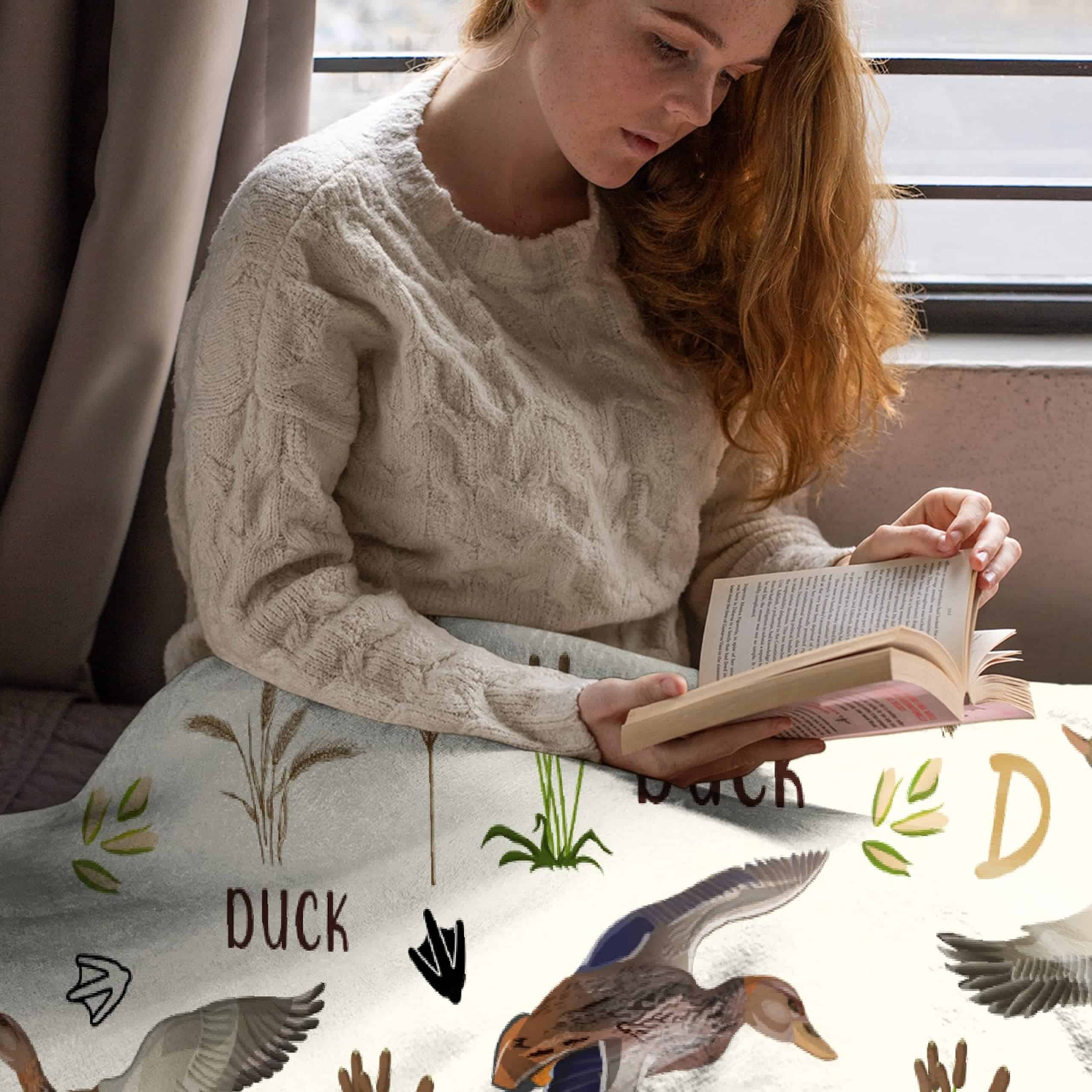 3. Versátil: La manta de Pato Real amigable con la piel y cómoda se puede utilizar para cualquier ocasión. Ya sea un picnic en el parque o una siesta en una silla. También puede ser el regalo perfecto para Halloween, Acción de Gracias, Día de San Valentín, Día de la Madre, Día del Padre, Cumpleaños y Navidad.