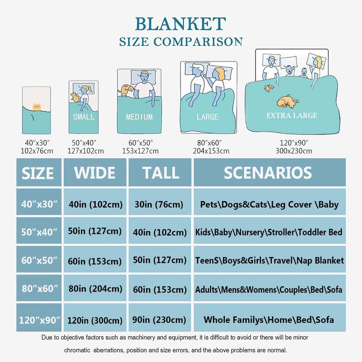 2. VARIEDAD DE TAMAÑOS PARA ELEGIR – 40x30in/102x76cm para niños pequeños; 50x40in/127x102cm para niños; 60x50in/153x127cm para adolescentes; 80x60in/204x153cm para adultos; 120x90in/305x229cm para familias. Esta manta de textura suave es perfecta para uso en interiores en el sofá y para picnics, campamentos o viajes al aire libre. Puede satisfacer las necesidades de diferentes personas y usos.