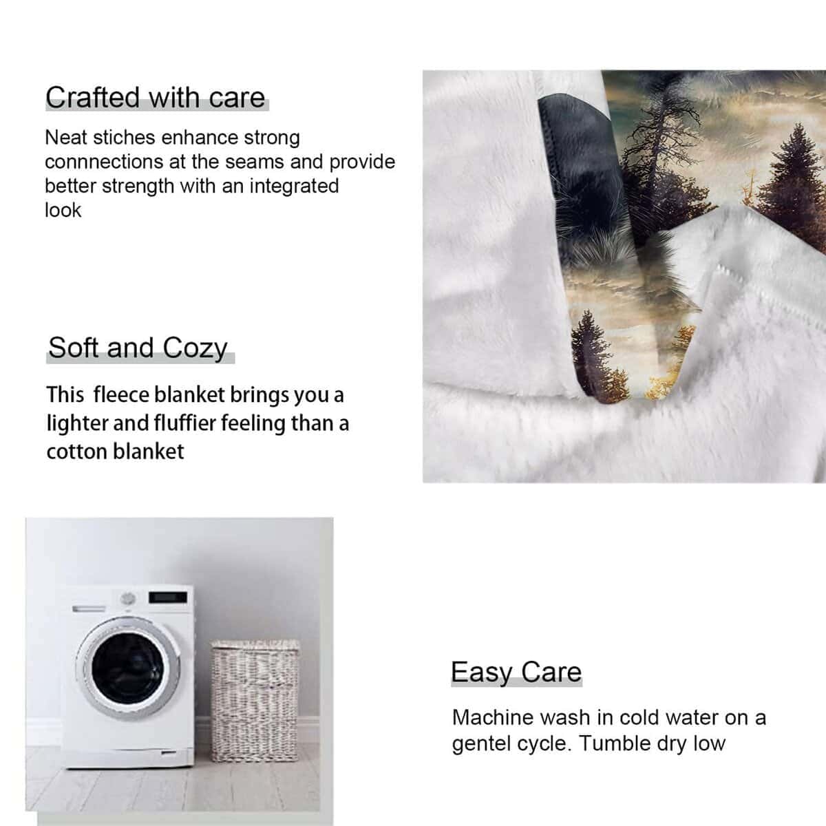 Hecho de 100% poliéster premium, telas de microfibra de alta calidad hacen que estas mantas acogedoras sean cálidas, esponjosas y duraderas en uso a largo plazo. Impreso con colores vibrantes y duraderos, sin alergias. Se puede usar como manta de televisión, manta de sofá, colcha de cama. Ligero y portátil, apto para uso en interiores y exteriores. Perfecto para regalo en cualquier ocasión.