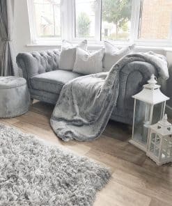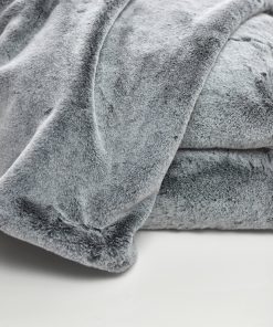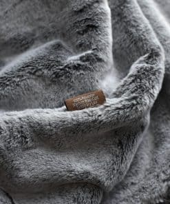Una manta de piel sintética única con una piel falsa escarchada en color gris hielo en ambos lados. Esta manta es gruesa, cálida y esponjosa, de peso medio a pesado y lo suficientemente grande como para abrigarse en su sofá o cama. Lavable a máquina y apta para secadora para un fácil cuidado.