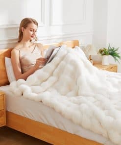 Esta manta de felpa estilo burbuja es una hábil combinación de grosor y densidad, ofreciendo un calor profundo que es notable y reconfortante. Diseñada para aquellos que valoran una aislación sustancial sin sacrificar la comodidad, esta manta es el epítome del calor y la acogida, asegurando que permanezcas abrigado en cualquier clima. Nuestra manta de piel sintética de conejo ejemplifica durabilidad, diseñada para resistir la prueba del tiempo y mantener su condición prístina incluso después del lavado. Sus fibras resilientes y su construcción robusta aseguran que la manta conserve su suavidad original, felpa y calidez, permitiendo que luzca y se sienta como nueva en cada uso. Este nivel de calidad la convierte en una compañera duradera en tu hogar, ofreciendo una mezcla perfecta de comodidad y resistencia. La manta de piel sintética de conejo burbuja suave ofrece comodidad versátil para cualquier entorno. Ideal para acurrucarse en el sofá, agregar calor a tu cama o realzar el estilo de tu sala de estar, sirve múltiples propósitos con elegancia y facilidad atemporales. Esta manta de piel sintética burbuja también es un regalo ideal para la familia o amigos. Con su textura suave y diseño exquisito, puede servir como un regalo reflexivo y precioso para cualquier ocasión especial. No es solo una manta, sino un cálido y alegre gesto destinado a llevar un toque de elegancia y confort a la vida de seres queridos y miembros de la familia.