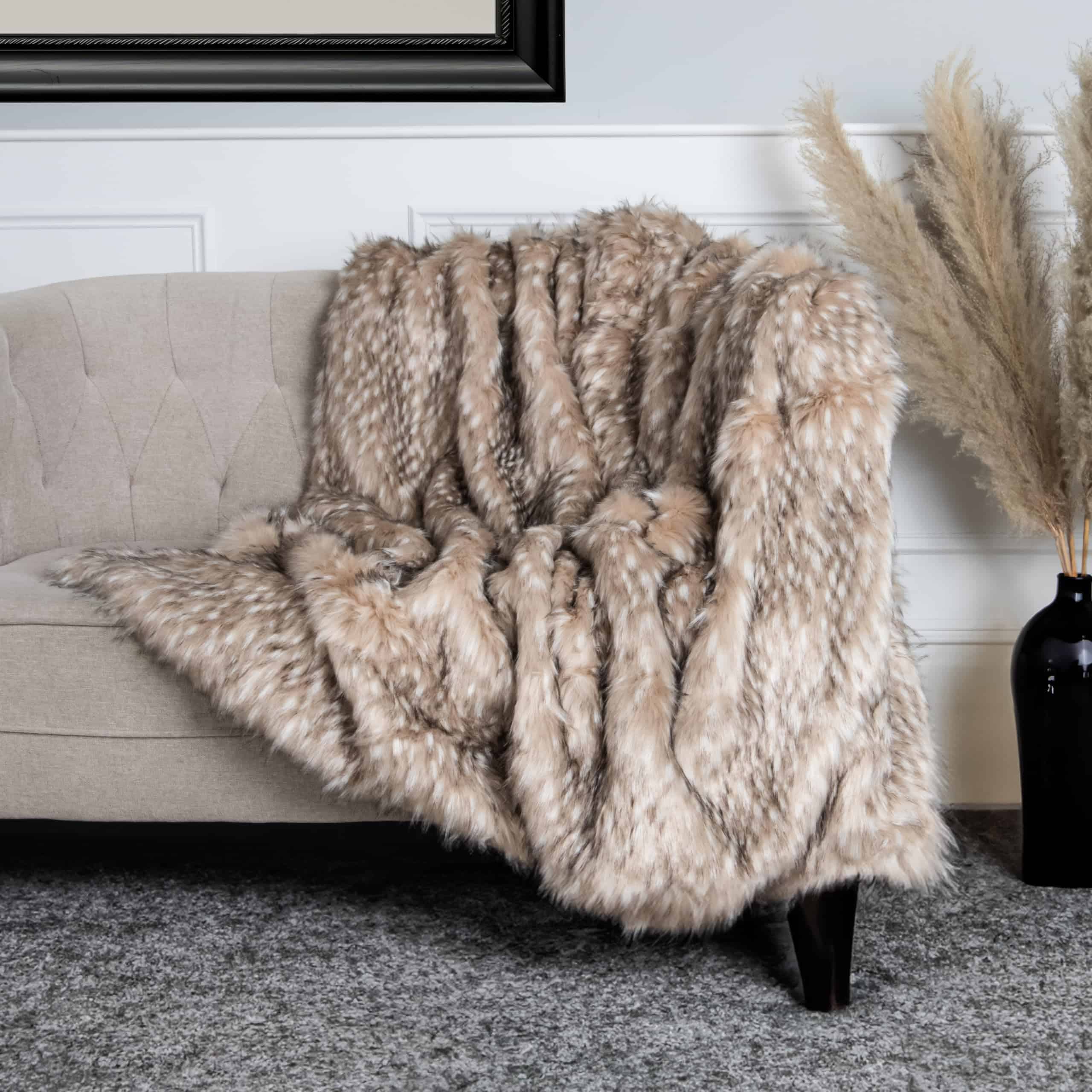 3. Manta de piel sintética de doble cara lujosamente forrada con piel sintética coordinada en color.
