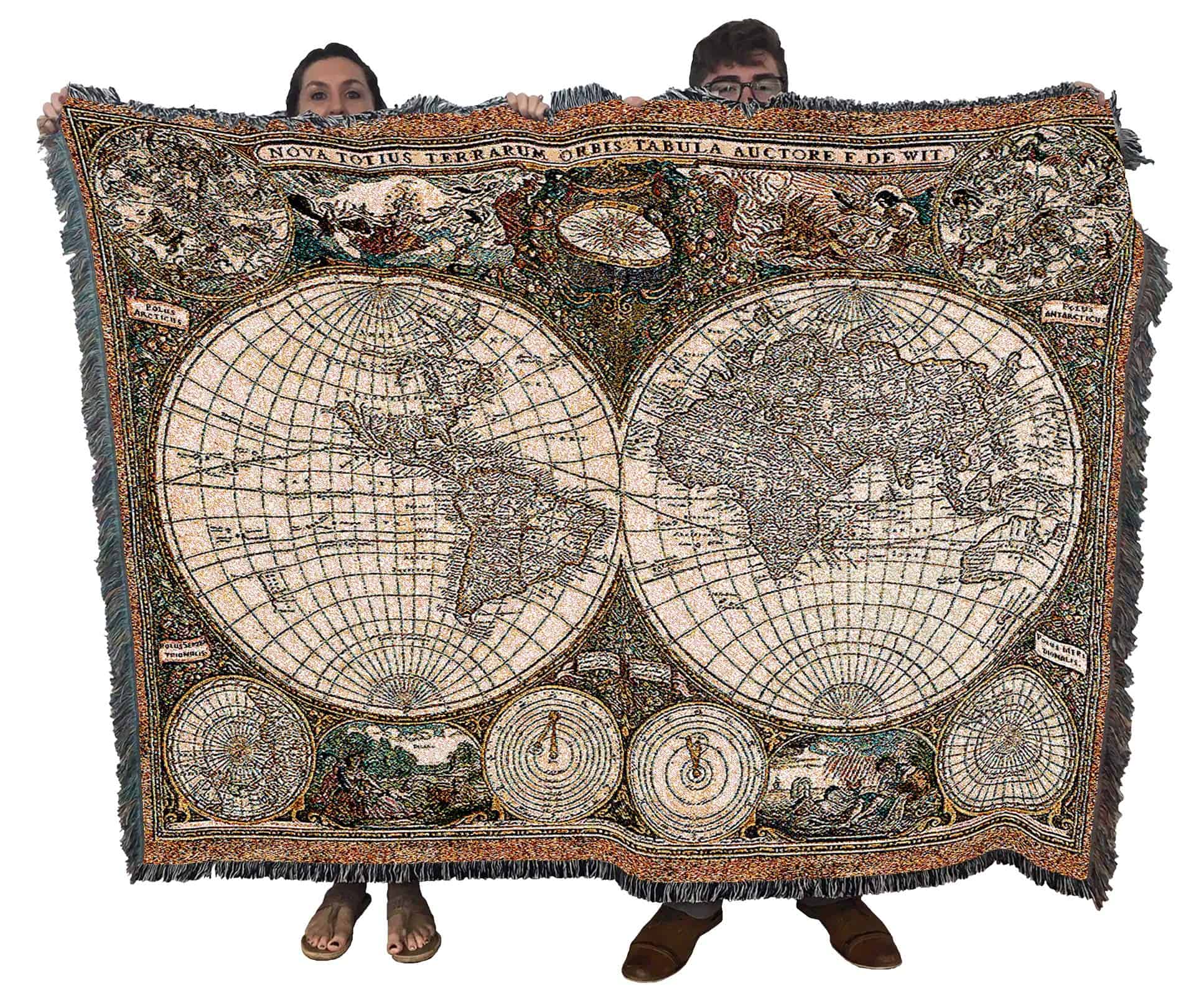 Manta de Mapa Antiguo del Mundo de Pure Country Weavers –