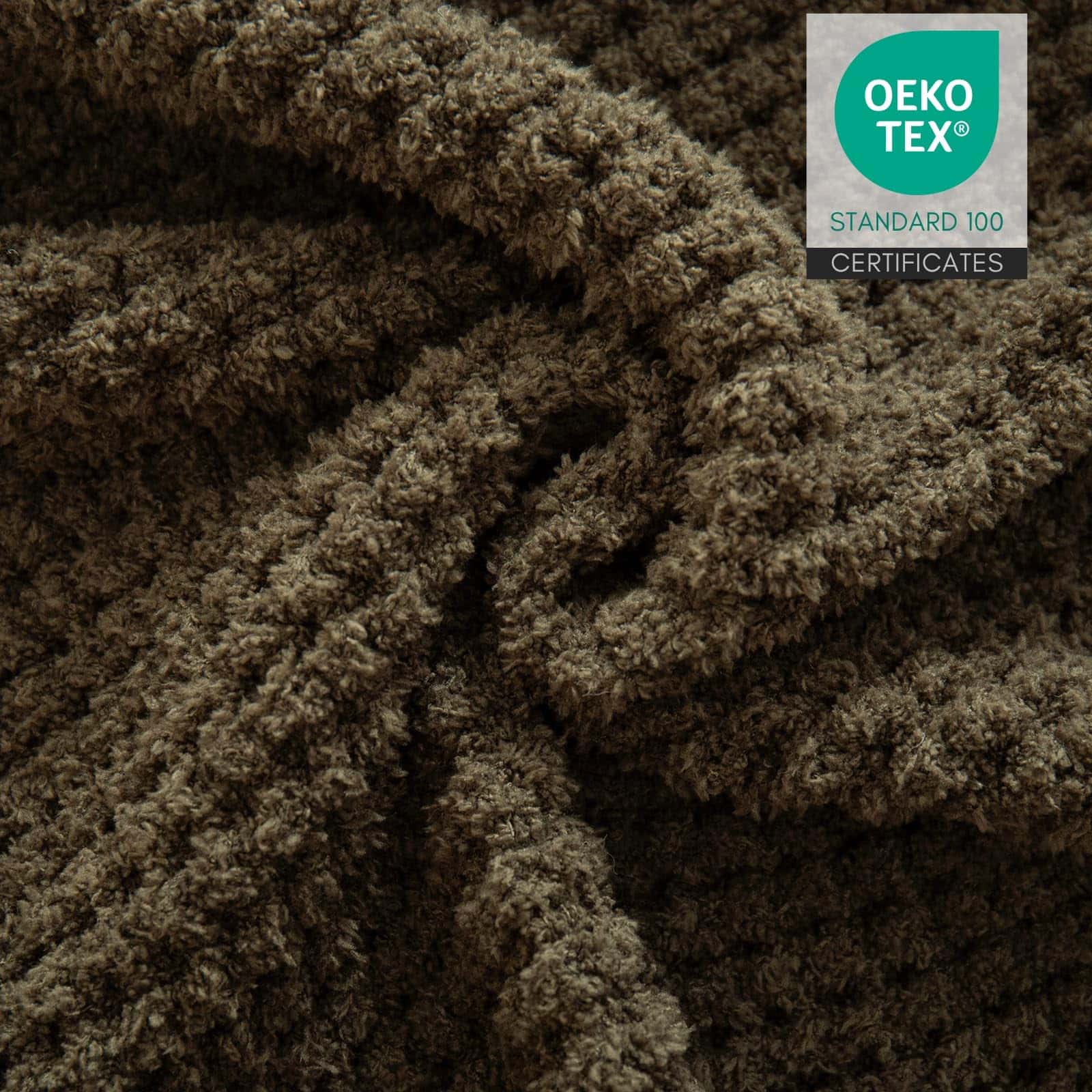 Nuestra manta tejida de waffle es perfecta para mantenerse cálido y acogedor en todas las estaciones. Con un tamaño de 51 x 63 pulgadas, es ideal para una persona o para compartir. Hecha de 100% microfibra de plumón, esta manta es suave, esponjosa y elástica, lo que la hace extremadamente cómoda. Puede ser utilizada en el sofá, cama, silla, oficina, viajes, camping y más. Incluso es un regalo perfecto para amigos, niños o familiares. Lavable a máquina en agua fría con detergente suave, no usar cloro ni planchar. Nuestra manta reacciona al calor de la secadora para mantener su suavidad original. Certificada por OEKO-TEX Standard 100 para garantizar que cumple con los más altos estándares de seguridad. Confía en que nuestra manta no solo es acogedora y cómoda, sino también segura para ti y tus seres queridos.