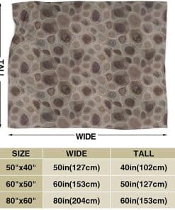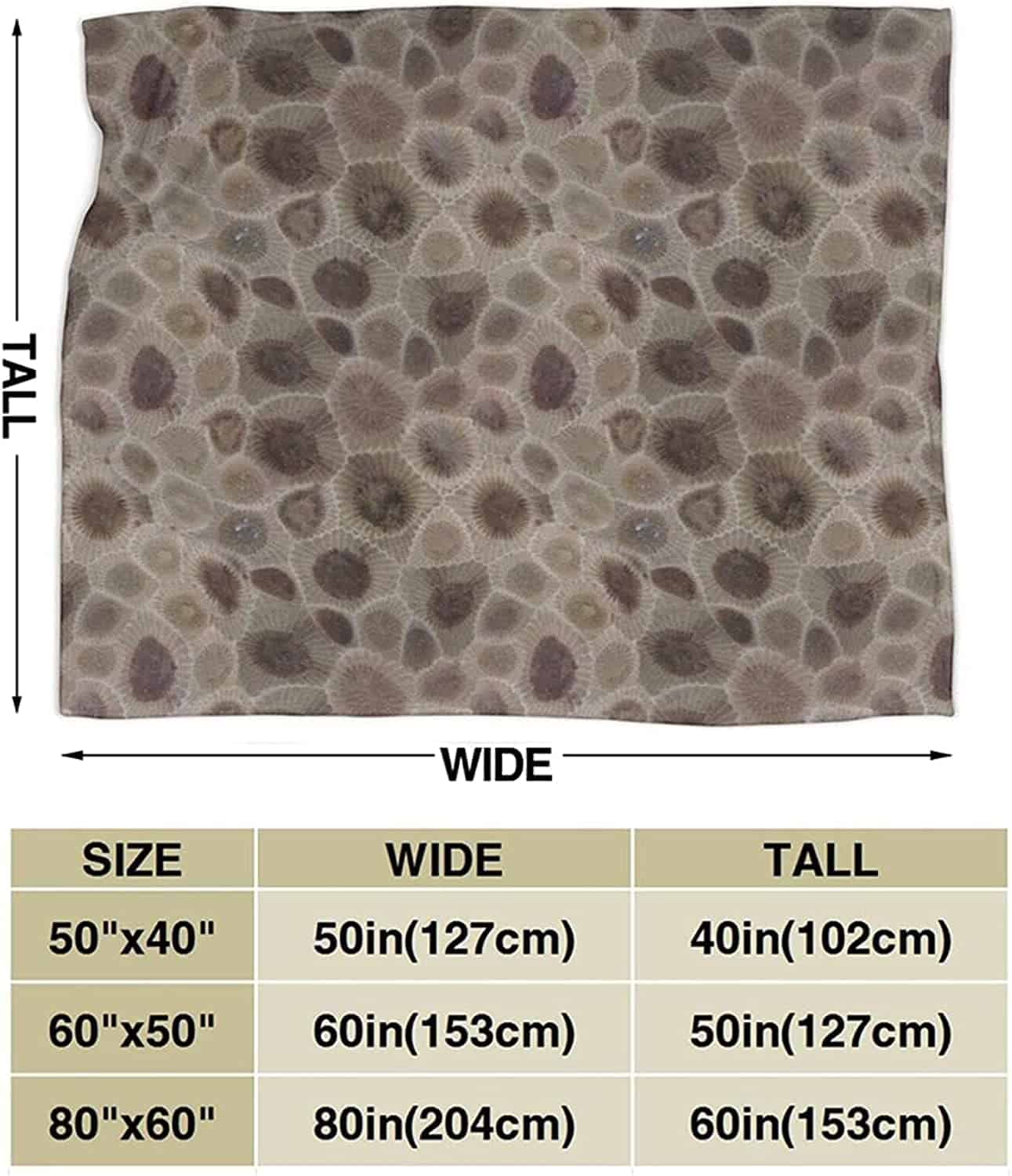Manta de microfibra súper suave, ligera y cómoda con estampado de piedra petoskey marrón disponible en tres tamaños: 50″x40″, 60″x50″ y 80″x60″. Hecha de alta calidad de franela. Impreso en un lado, blanco en el interior. Puede ser utilizado como manta de sofá, manta de cama, manta para exteriores e interiores, turismo, regalo, decoración del hogar, regalo de cumpleaños, aniversario, etc. Añade textura extra a tu decoración y convierte tu habitación en un espacio atractivo con este diseño simple y elegante. Muy suave, cálido y ligero, perfecto para acurrucarse en el sofá, cama, cine, parque, etc. Adecuado para todas las estaciones. ¡Un regalo perfecto para hombres y mujeres, día de la madre y del padre, Navidad y Año Nuevo! Por favor, preste atención al tamaño antes de realizar la compra.