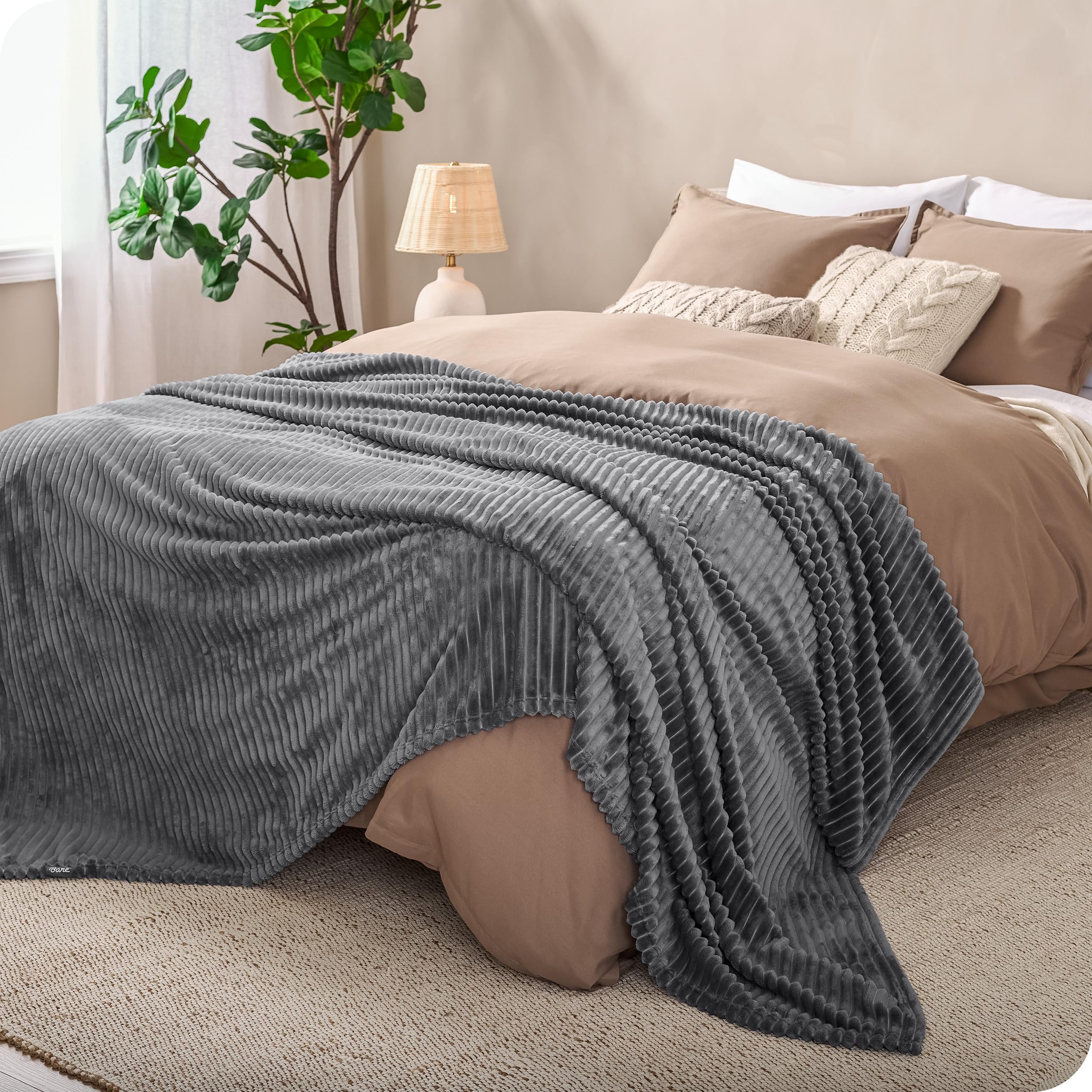 Manta de Microplush Bare Home Texturizada – -Gris Acanalado