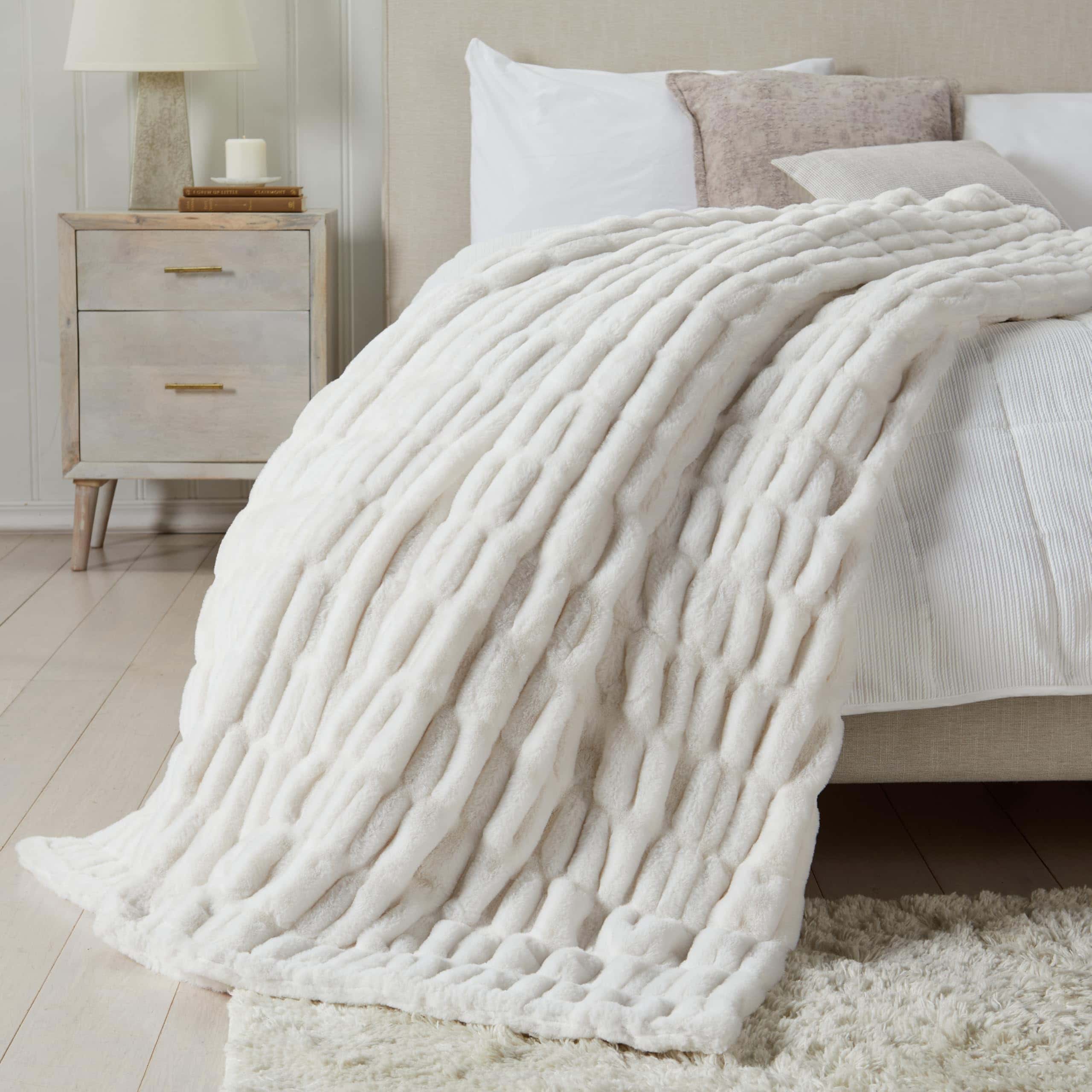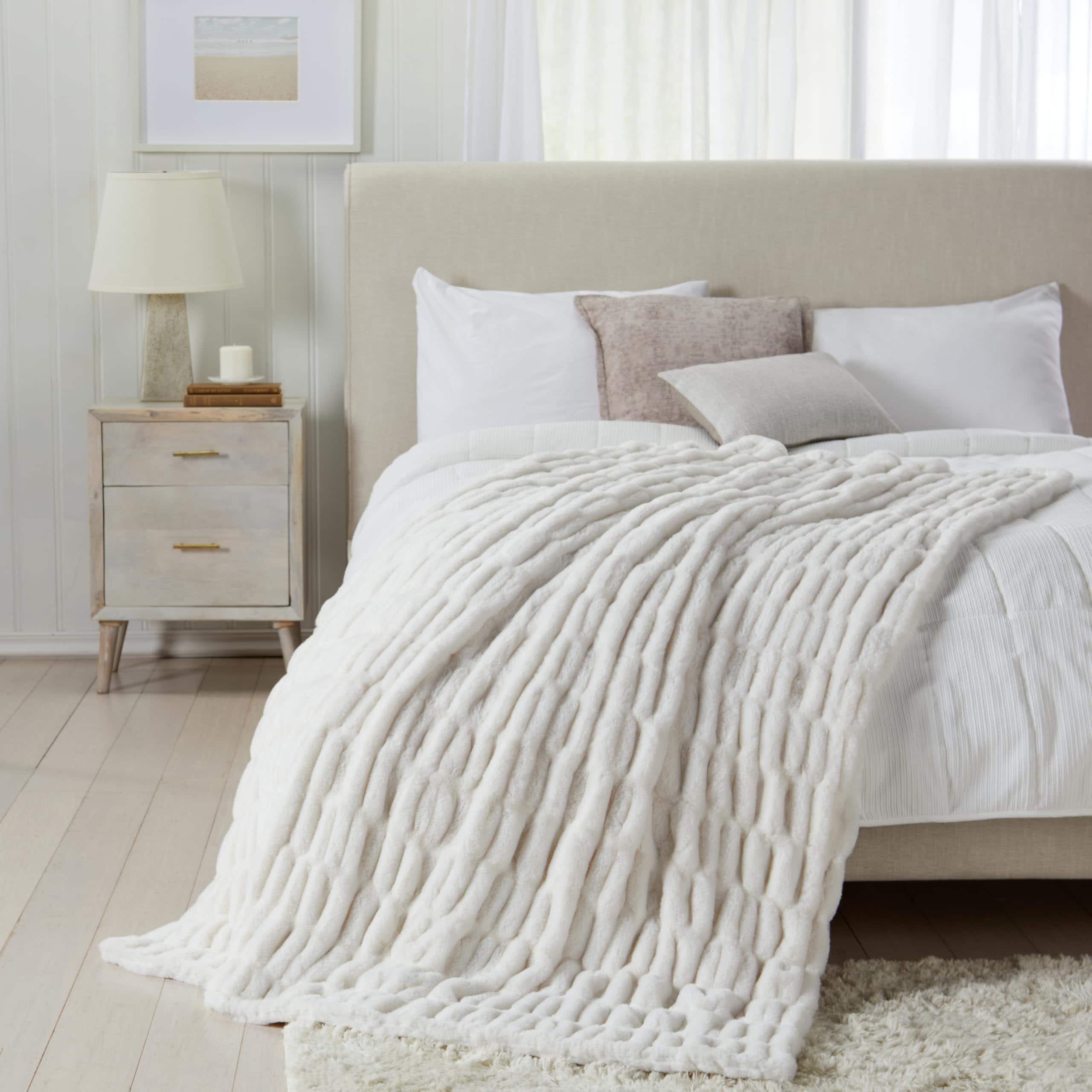 Springtree Home | Manta de Microplush | Manta Blanca | Manta Perfecta para Sofá Todo el Año | Manta de Otoño | Manta Esponjosa | Colección Lily