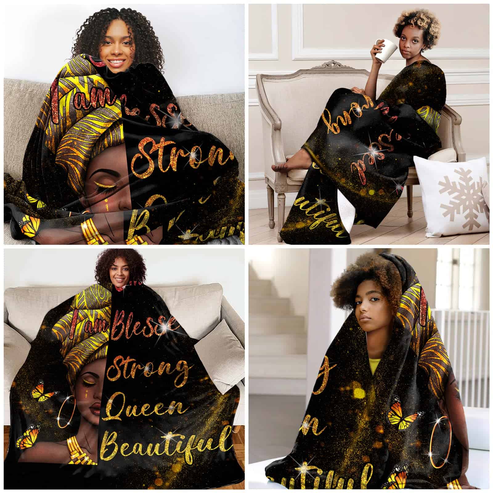 1. Cálida y suave: Nuestra manta de mujer negra está hecha de poliéster y terciopelo. Suave, ligera, cómoda, duradera, transpirable, no se desprende y no forma bolitas. Basado en un diseño integrado, las costuras ordenadas mejoran las conexiones fuertes en las costuras y brindan una mejor resistencia estructural. Construido para durar.