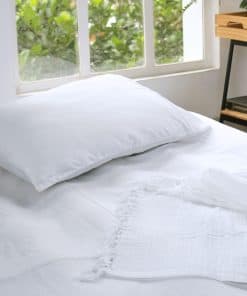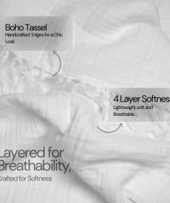 Personaliza tu espacio con nuestra manta de muselina disponible en una variedad de colores suaves y relajantes para que puedas combinarla con tu decoración existente. Ya sea que estés buscando añadir un toque de estilo boho a tu hogar o simplemente busques una manta acogedora para las noches frescas, nuestra manta de algodón es la elección perfecta.