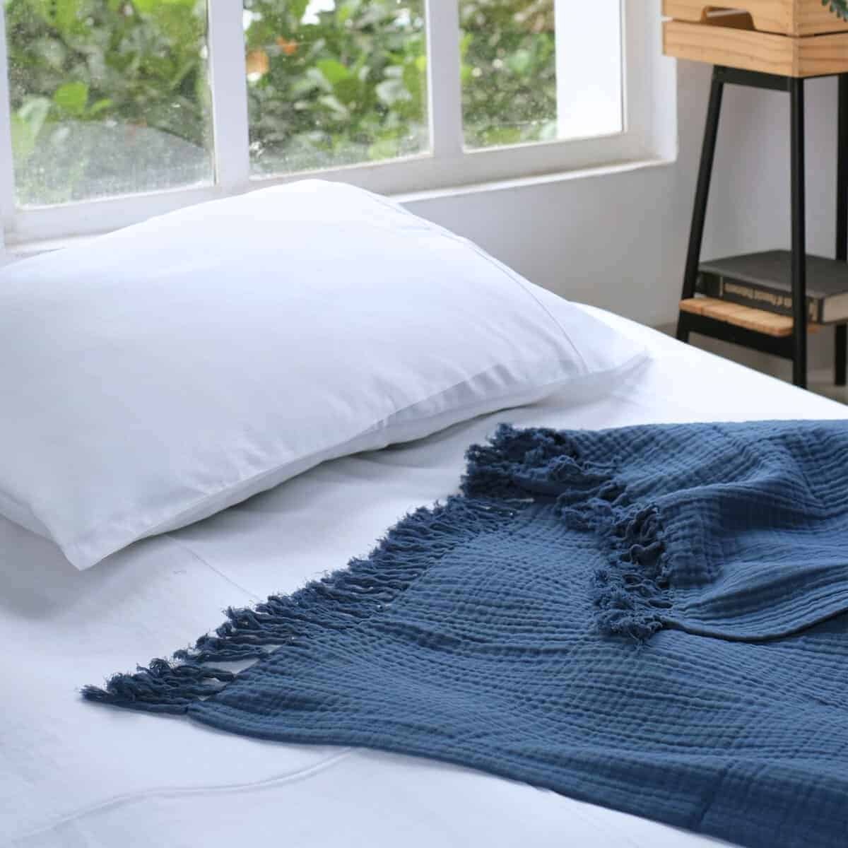 3. Confort Personalizable: Personaliza tu experiencia de ropa de cama con nuestra versátil manta para cama, disponible en cinco colores relajantes blanco, azul, pergamino, espuma marina y gris para complementar cualquier decoración de dormitorio. Elige entre cuatro tamaños para garantizar el ajuste perfecto para tu cama, ya sea que estés buscando mantas de cama para una noche de sueño acogedora o específicamente buscando una manta de estilo boho que también ofrezca un confort y estilo óptimos.