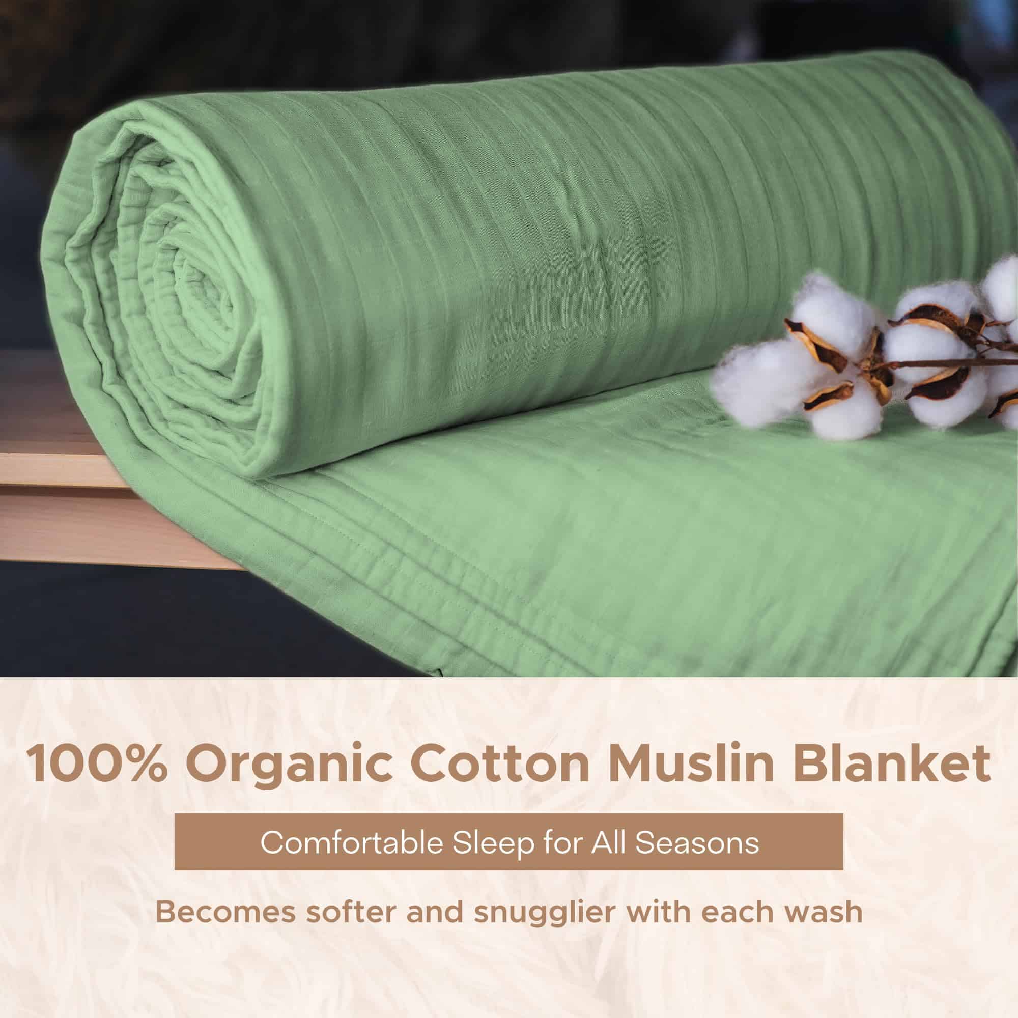 Manta de muselina de algodón orgánico 100% -Verde Salvia