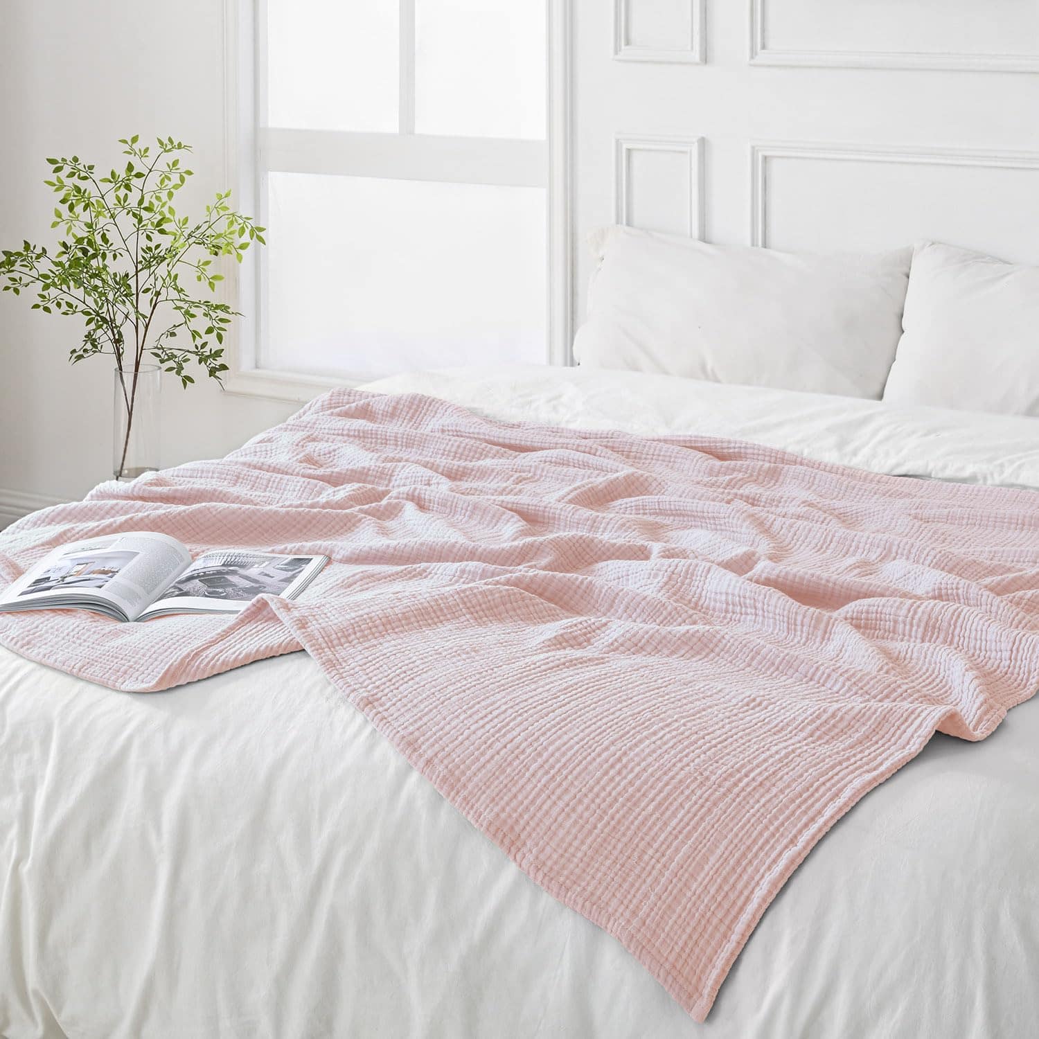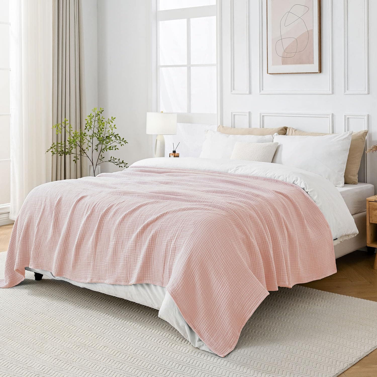 Manta de Muselina Esterra Tamaño King Suave Cálida Ligera de Algodón Pre-Lavado, Manta Transpirable de Gasa de 4 Capas para Sofá Cama, Rosa Claro, 108×90 Pulgadas – MATERIAL DE CALIDAD: Fabricada con hilo de algodón premium seleccionado, nuestra manta de muselina es amigable con la piel, suave y duradera. El proceso de tintura ecológica proporciona una comodidad adicional para pieles sensibles. Probada para cumplir con los estándares OEKO-TEX 100 sobre más de 300 sustancias tóxicas para garantizar que cada hilo sea inofensivo y proteja a tu familia. TRANSPIRABLE Y ABSORCIÓN DE HUMEDAD: Nuestra manta de muselina tiene una absorción excepcional de humedad y una gran transpirabilidad. El tejido suave y ligero proporciona suficiente comodidad y calidez sin sobrecalentamiento. Disfrutarás de un sueño profundo y reparador con nuestra excelente manta de muselina. USO POLIVALENTE: Nuestra manta de muselina es perfecta como manta de sofá o para utilizar en la cama para añadir una capa arrugada natural extra. También es ideal para viajar, acampar o hacer picnics. Siempre te sentirás acogedor y cómodo cuando te envuelvas con nuestra manta de muselina. CUIDADO FÁCIL: Nuestra manta de muselina ha sido diseñada para un uso duradero. Se puede lavar a máquina. Mantiene la suavidad y el hermoso patrón arrugado con cada lavado. Recomendamos utilizar una bolsa de lavandería para proteger bien tu manta de muselina. GARANTÍA DE SATISFACCIÓN: Nuestro objetivo es la satisfacción al 100% de nuestros clientes. Cada producto de ESTERRA fue cuidadosamente seleccionado. Si encuentras algún problema de calidad, no dudes en ponerte en contacto con nuestro servicio de atención al cliente y organizaremos un reemplazo o reembolso.