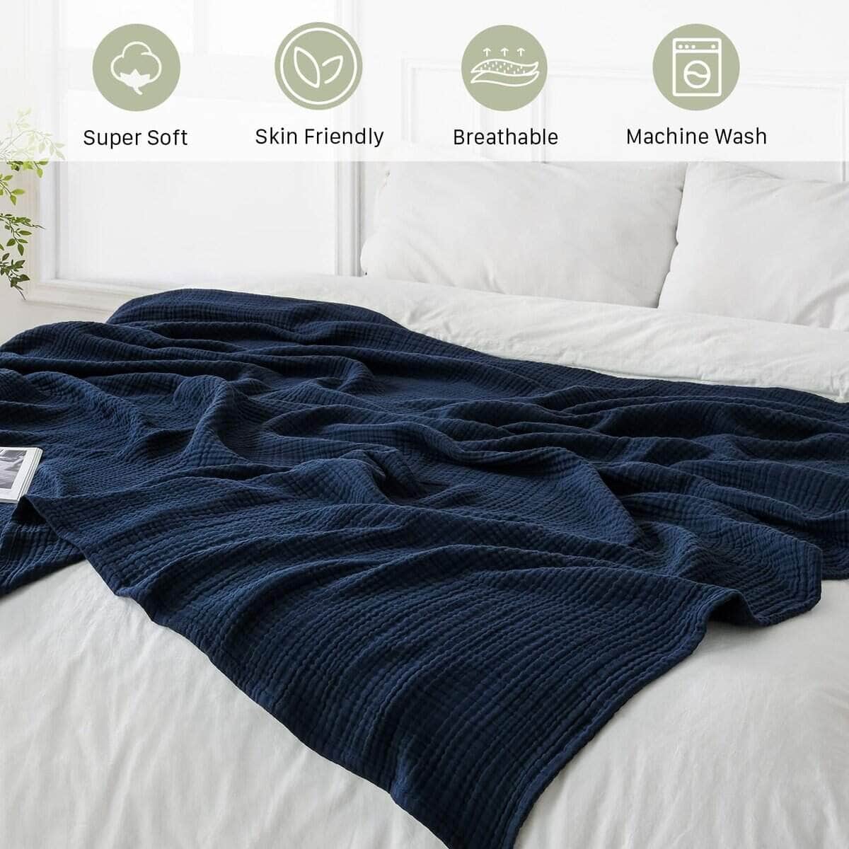 3. Versátil y con Estilo: Esta manta de muselina es más que un simple artículo funcional; es una elegante adición a tu hogar. Úsala como manta en tu sofá o cama para añadir un toque de elegancia natural y casual con su encantadora textura arrugada. También es ideal para viajes, camping o picnics, ofreciendo calidez dondequiera que vayas.