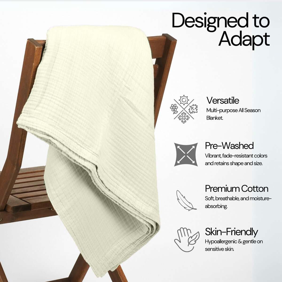 Manta de Musselina de Algodón 100%, Manta de Gasa 80″X90″