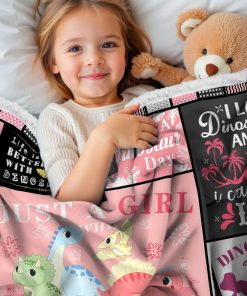 1. Regalos de Dinosaurios para Chicas: Esta manta de dinosaurios está impresa con Just a Girl Who Love Dinosaurs y varios dinosaurios lindos y palabras. Impresiona con su diseño único, texto reflexivo y fina arte impreso. Cuando tu amiga o miembro de la familia reciba este regalo único de tema de dinosaurios, ¡lo amará y creará recuerdos entrañables! Es un gran regalo para celebrar un cumpleaños, Navidad, Año Nuevo, Día de Acción de Gracias o Aniversario.