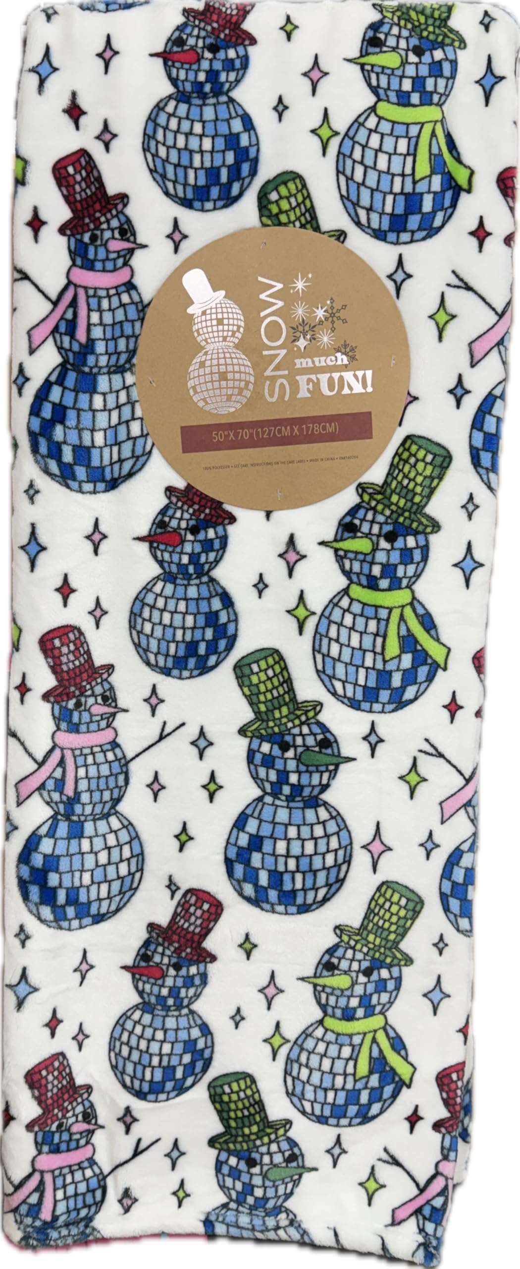 Manta de Navidad de Invierno – Esta hermosa manta blanca cuenta con un divertido diseño de un muñeco de nieve de discoteca, perfecto para agregar un toque festivo a tu hogar durante la temporada navideña. Tiene unas dimensiones de 50 x 70 pulgadas, ideal para mantenerte cálido y acogedor en las frías noches de invierno. ¡Decora tu hogar con esta encantadora manta y disfruta de la época navideña en completa comodidad!