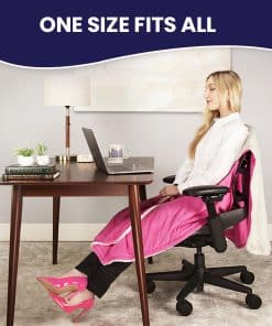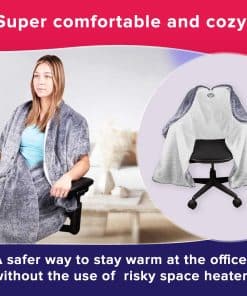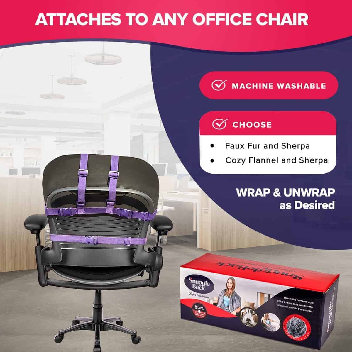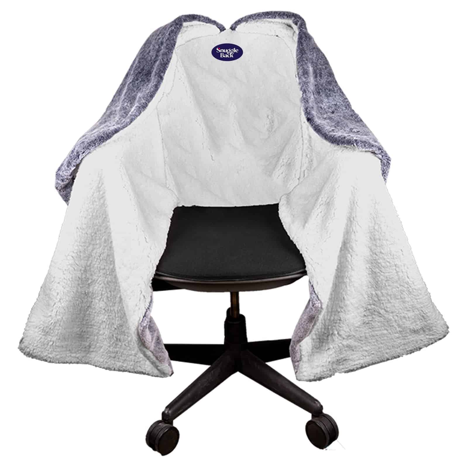 Manta de oficina original de SnuggleBack; Envoltura acogedora y cómoda para silla de escritorio de oficina que se sujeta de manera conveniente para calor y manos libres. Mantente cálido en invierno o verano. Gris de piel sintética con sherpa de felpa. ¡Mejora tu comodidad en la oficina con la manta de silla original de SnuggleBack! Esta manta patentada se adhiere a cualquier silla de oficina para brindarte un abrazo cálido y acogedor en los días fríos de invierno o en las noches frescas de verano. La SnuggleBack está diseñada con dos juegos de correas elásticas que se pueden fijar de forma segura a cualquier silla de oficina, sin importar su forma. Las cuatro solapas separadas envuelven las extremidades del cuerpo para crear un capullo de calor que es increíblemente fácil de entrar y salir. Simplemente levántate y las solapas caerán naturalmente del cuerpo, listas para envolverse rápidamente cada vez que regreses a tu silla. Elije entre el lujoso material de piel sintética gris o la suave felpa sherpa para experimentar la máxima comodidad y calidez, sin comprometer la estética de tu espacio interior. El Snuggleback viene en varios colores para que puedas personalizar tu manta según tu personalidad y estilo. Adiós a las guerras del termostato de la oficina: con la Snuggleback, puedes crear tu propio entorno perfecto sin importar la temperatura exterior. Ya no tendrás que preocuparte si el aire acondicionado está demasiado alto en verano o si la calefacción está demasiado baja en invierno. La Snuggleback te mantiene a la temperatura perfecta para que te sientas cómodo y acogedor en todo momento. Además, no hay riesgo de calor con la Snuggleback. A diferencia de los calentadores de espacio y los calentadores eléctricos, nuestra manta de silla no utiliza electricidad y no tiene cables expuestos, lo que la hace segura de usar, incluso durante largas horas en el escritorio o relajándote en casa con algunos juegos. La Snuggleback es de talla única para todos, por lo que puedes estar seguro de que se adaptará perfectamente a tu silla y a ti. Además, es lavable a máquina, lo que facilita su cuidado y mantenimiento. Sigue las sencillas instrucciones de lavado para garantizar que tu Snuggleback se mantenga en óptimas condiciones: lavar a máquina en frío con colores similares y secar al aire. ¡Disfruta de la comodidad acogedora y el calor de la manta de oficina original de SnuggleBack con un diseño único y funcional que transforma por completo tu experiencia en la oficina o en casa!